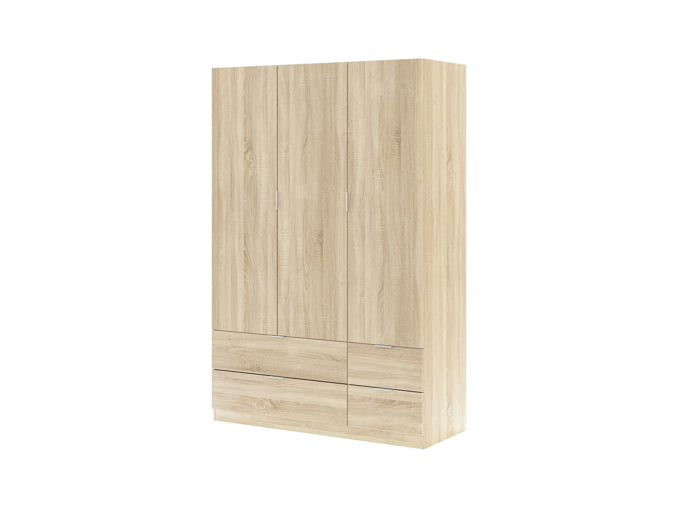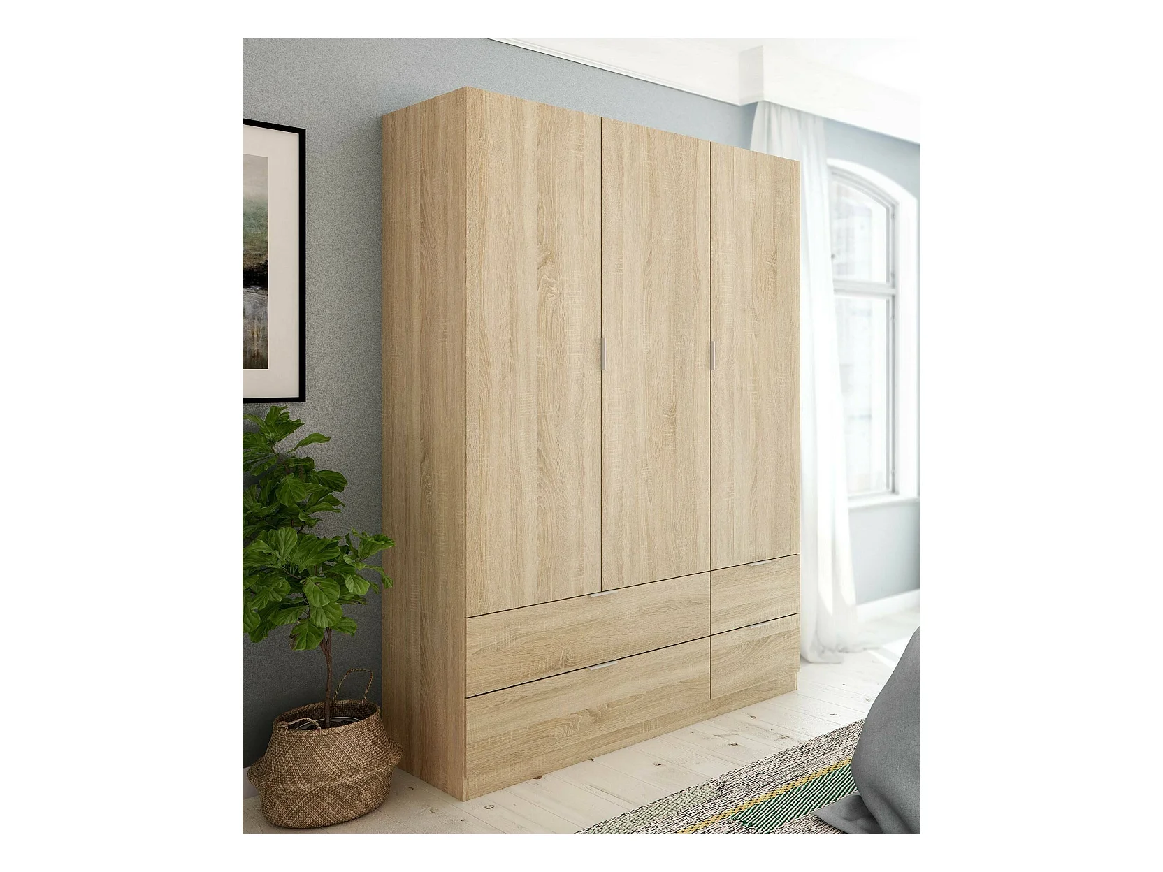 Kleiderschrank Dob, Schlafzimmermöbel mit 3 Türen und 2 Schubladen, Kleiderbügel, 135x52h200 cm, Eiche