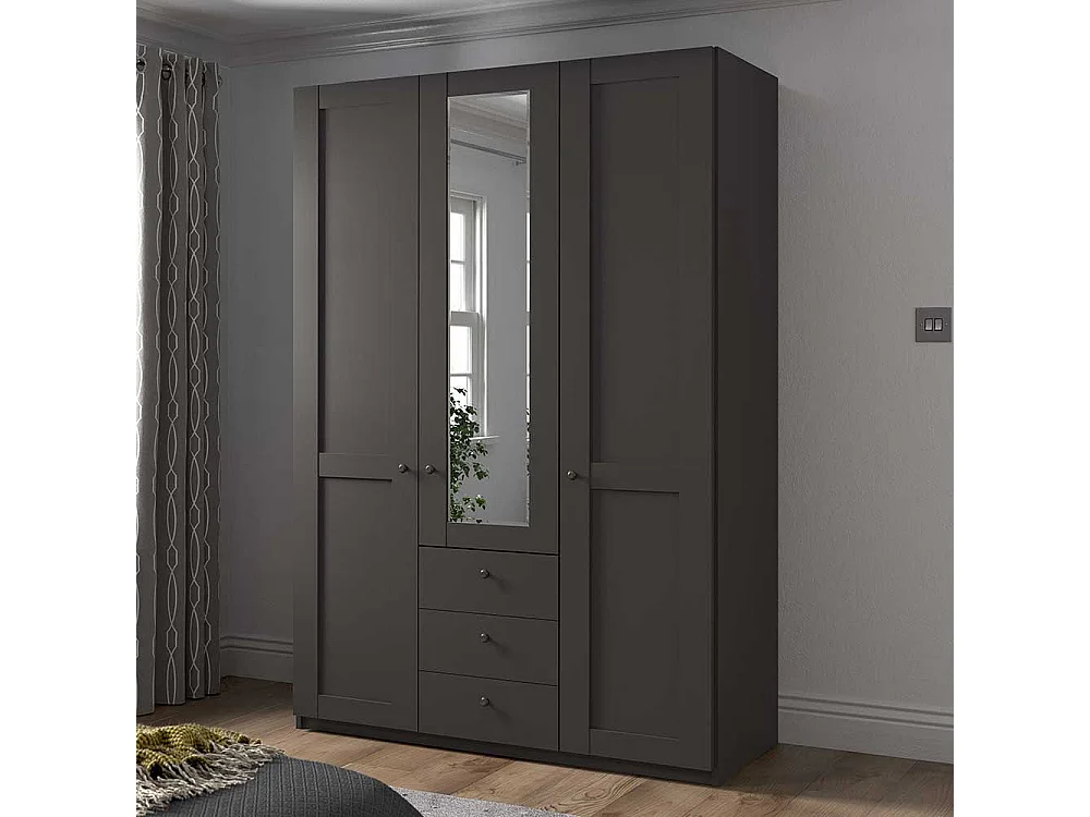 Kleiderschrank dunkelgrau Spiegel 150 cm breit 216 cm hoch