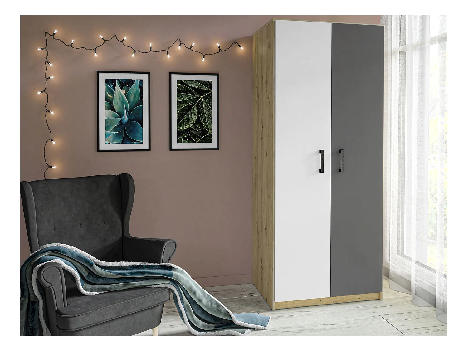 KLEIDERSCHRANK Fini Artisan Eiche / weiß / anthrazit 80 / 53 / 191cm
