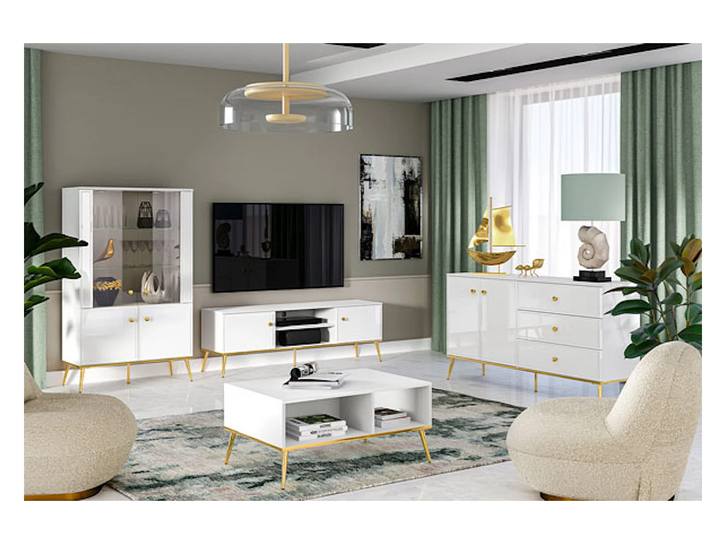 KLEIDERSCHRANK Goldin weiß / weiß hochglanz / gold 92 / 53 / 190cm