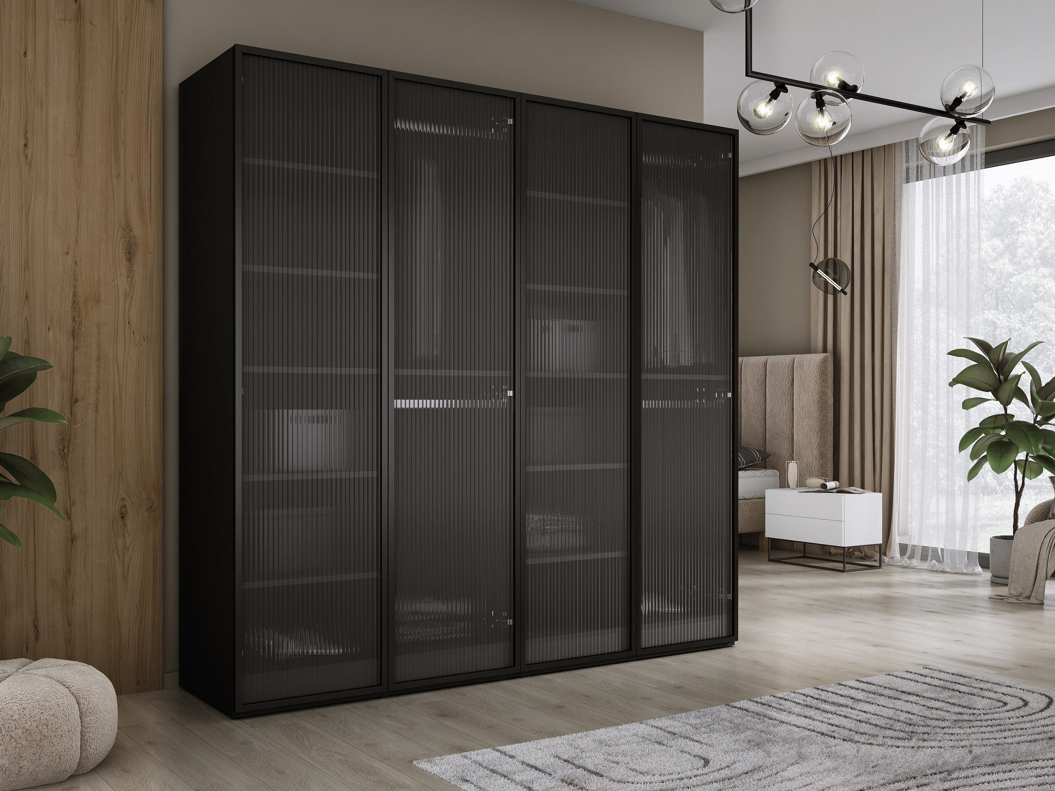 Kleiderschrank, Graphitschwarz / klares Glas, 2 x 100 x 200 x 51 cm
