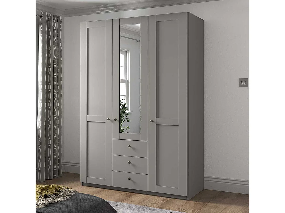 Kleiderschrank im Landhausstil in Hellgrau drei Schubladen
