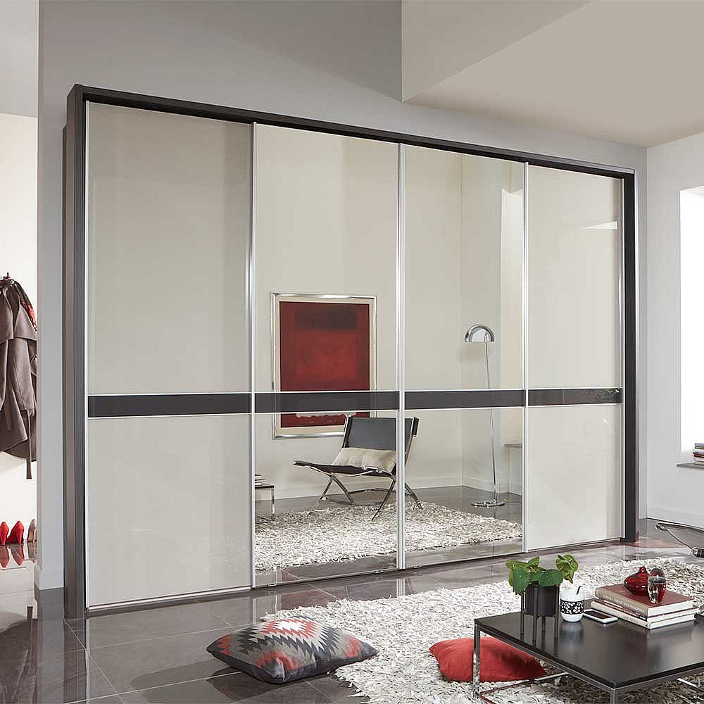 Kleiderschrank in Anthrazit und Hellgrau Schwebetüren