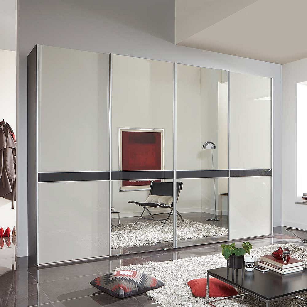Kleiderschrank in Anthrazit und Hellgrau Schwebetüren