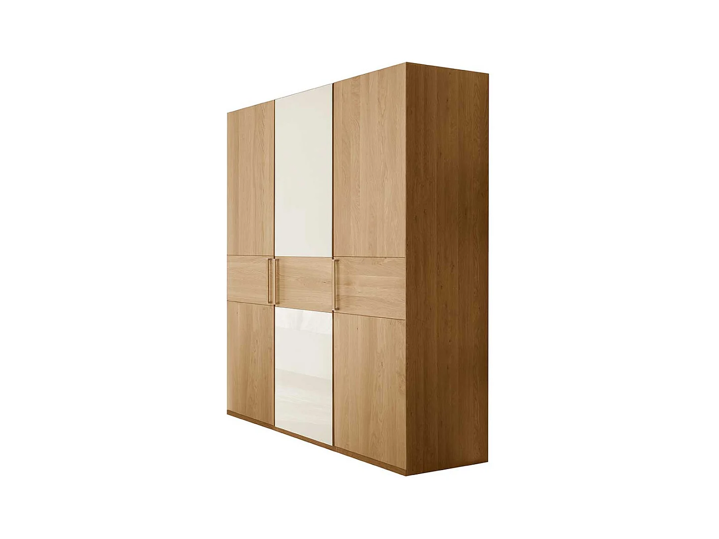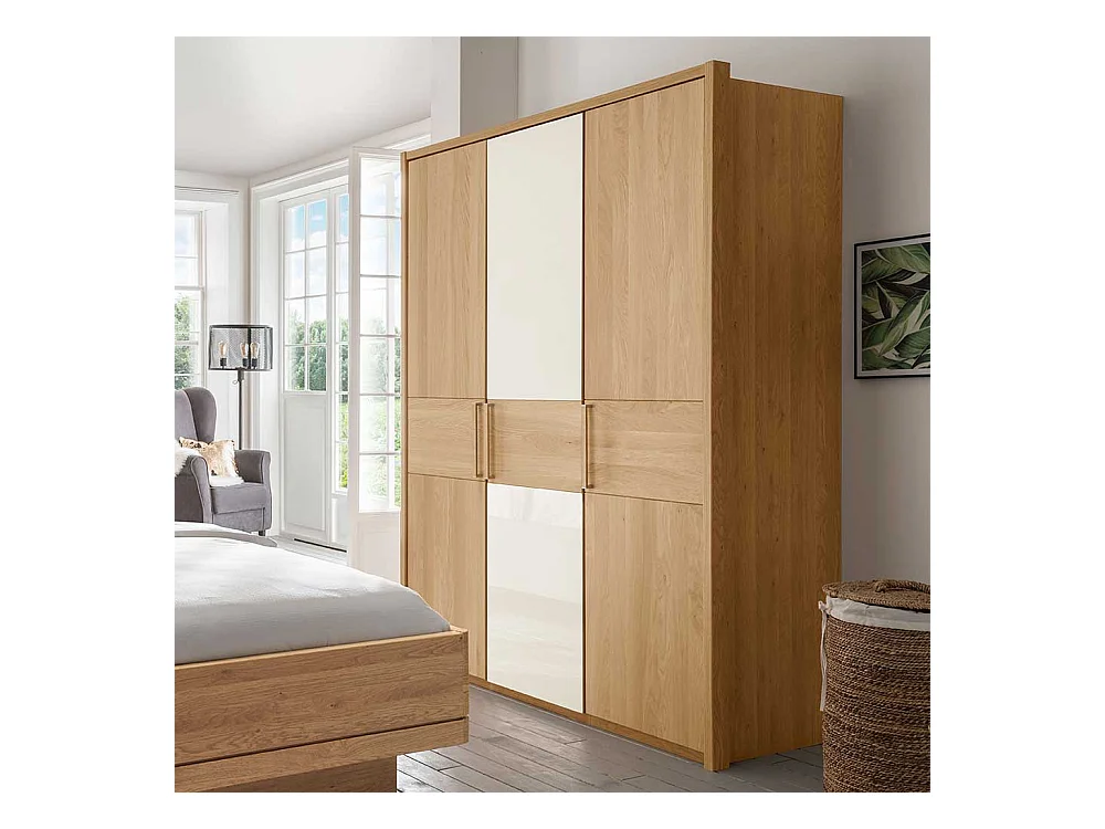 Kleiderschrank in Beige Glas beschichtet Eiche Massivholz