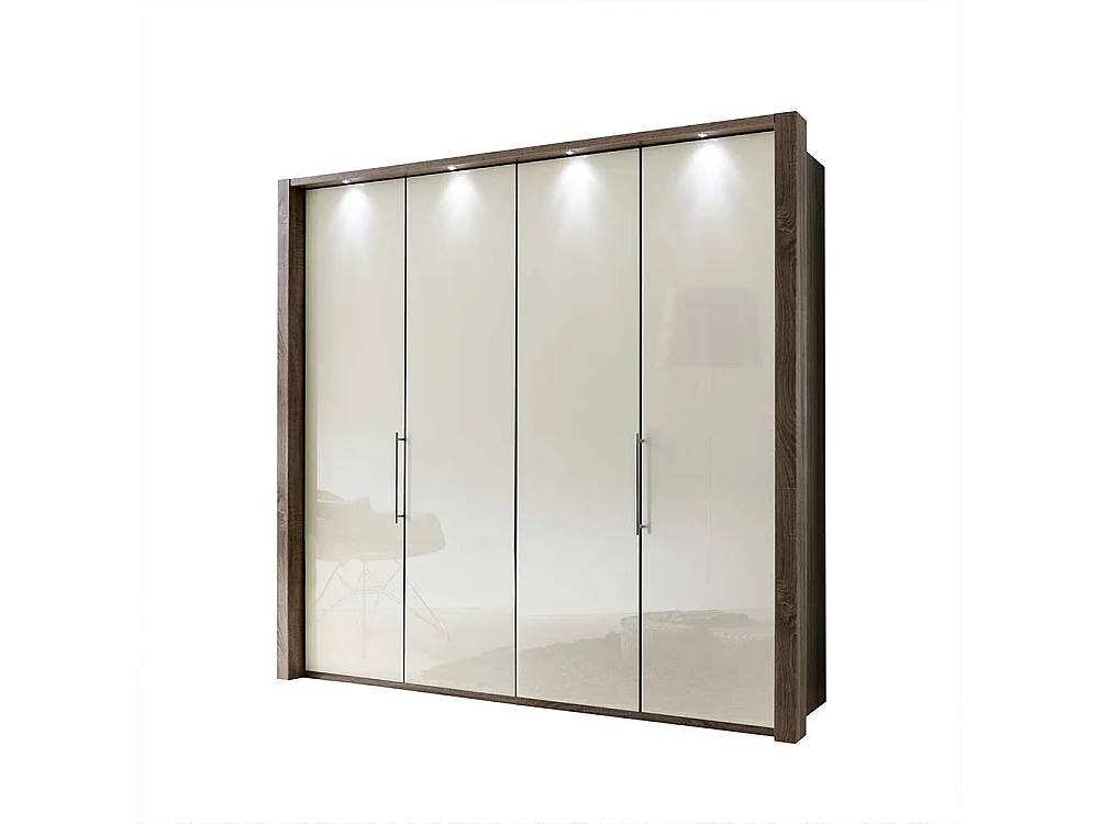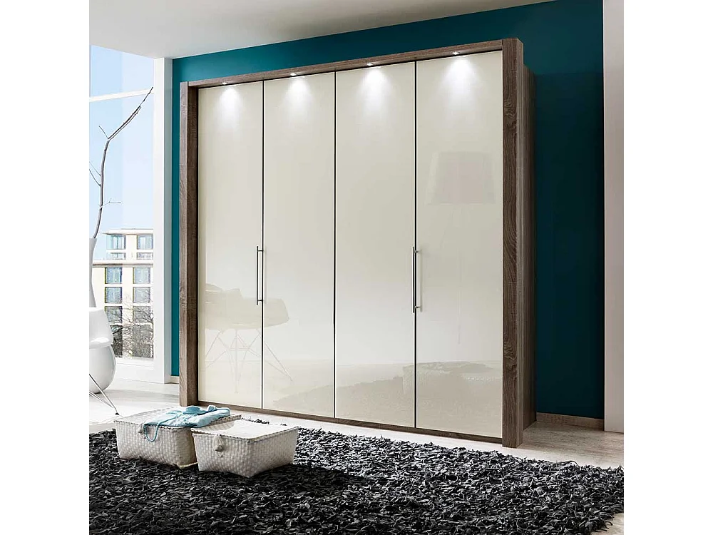 Kleiderschrank in Weiß Creme Eiche Trüffel mit Gleittüren
