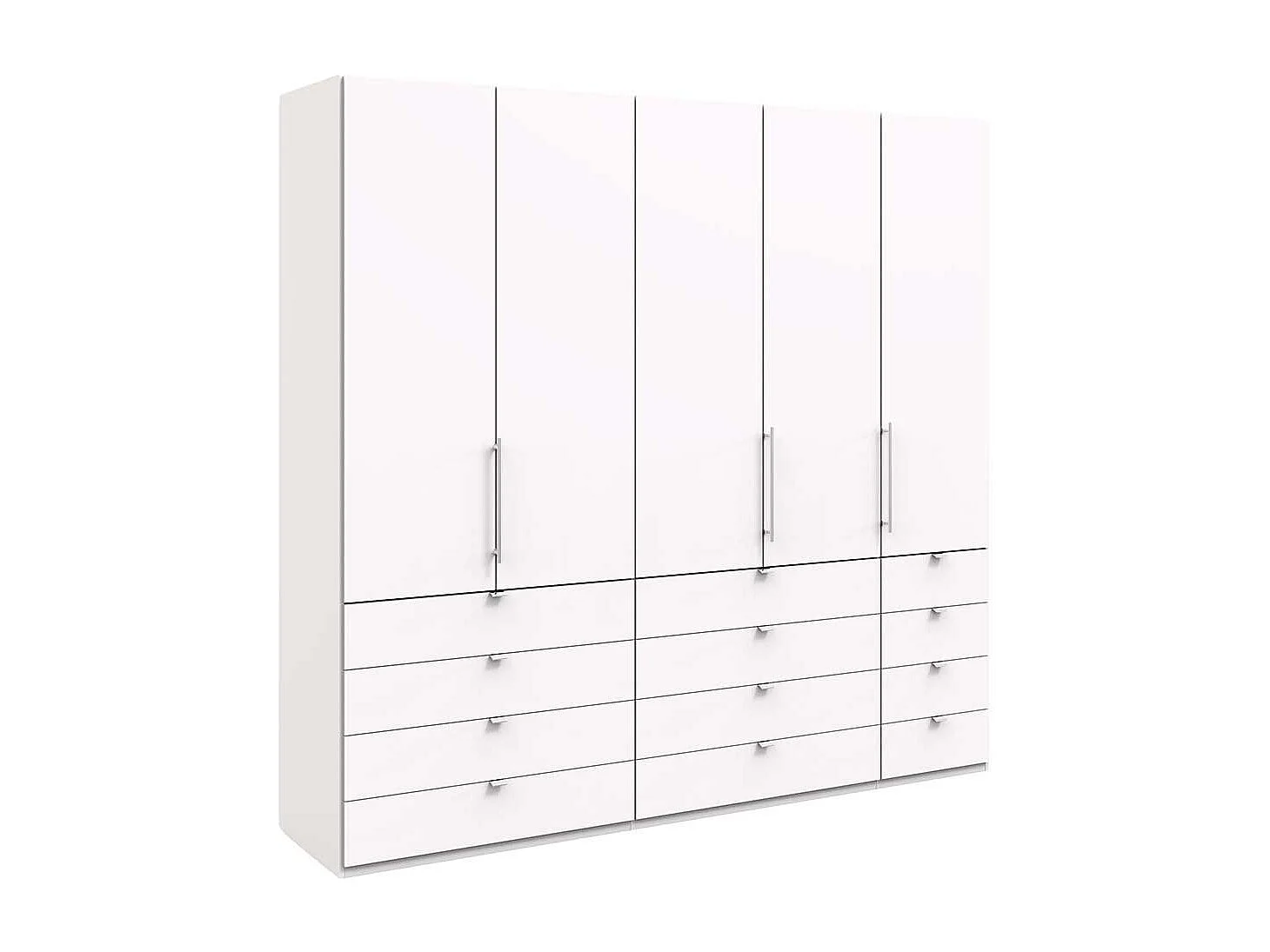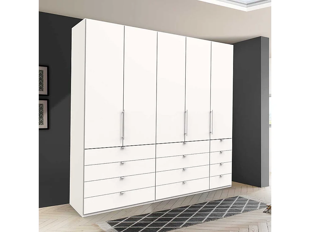 Kleiderschrank in Weiß Falttüren und vielen Schubladen