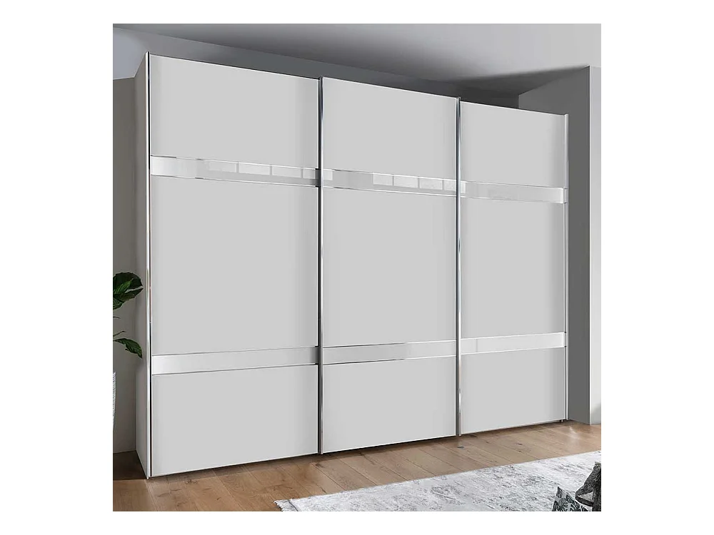 Kleiderschrank in Weiß und Chromfarben Schwebetüren