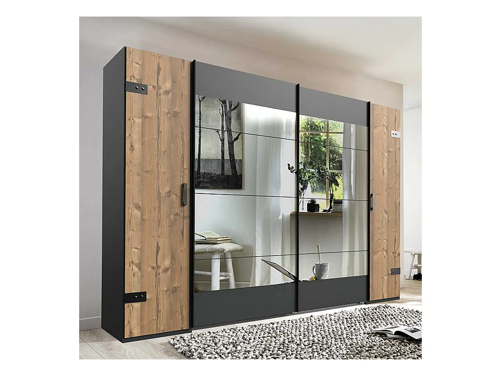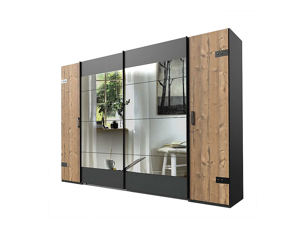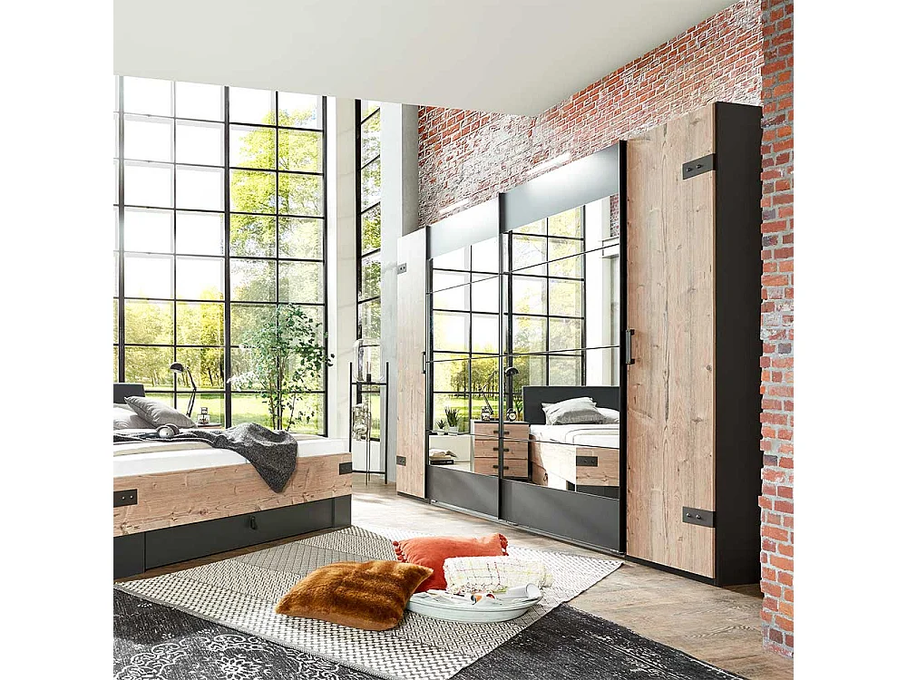 Kleiderschrank Industriestil mit Dreh- und Schiebetüren 272 cm breit