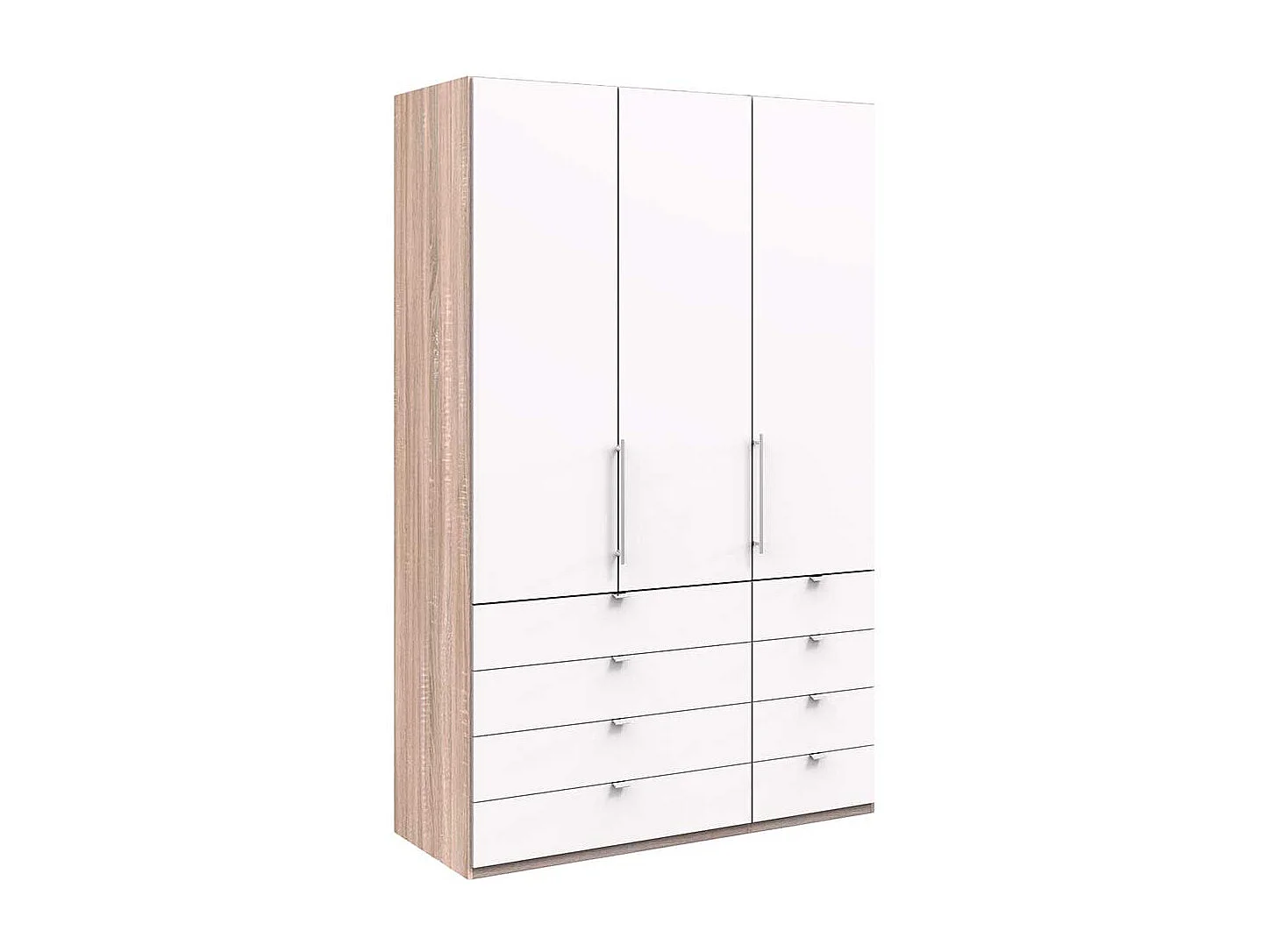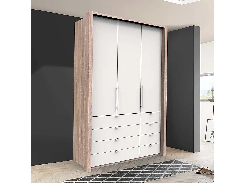 Kleiderschrank Jugendzimmer 2 türig mit 8 Schubladen Weiß Eiche Sägerau
