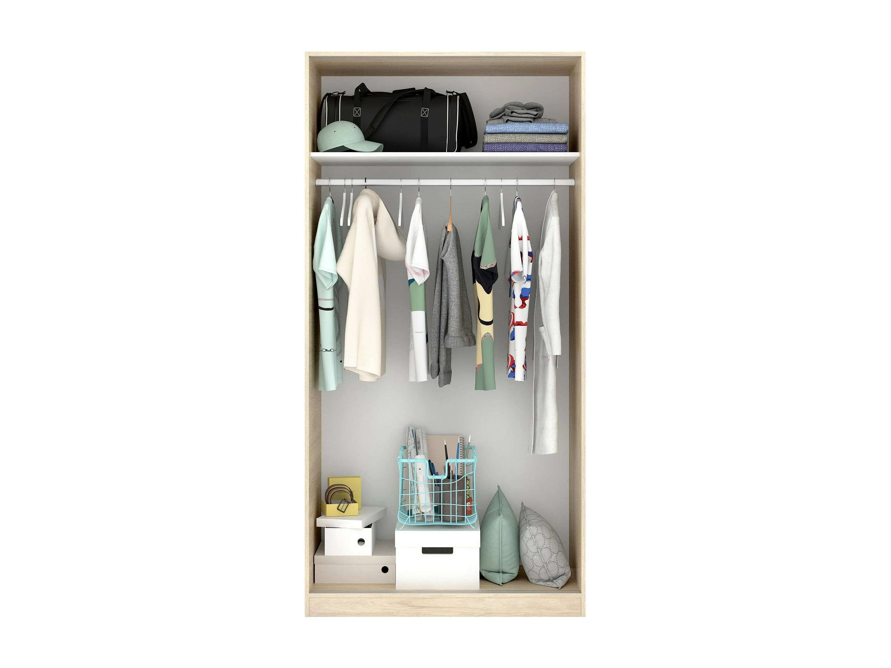 Kleiderschrank Kilimangiaro, Garderobe für Schlafzimmer, Kleiderschrank mit 2 Schiebetüren, 100x50h204 cm, Eiche