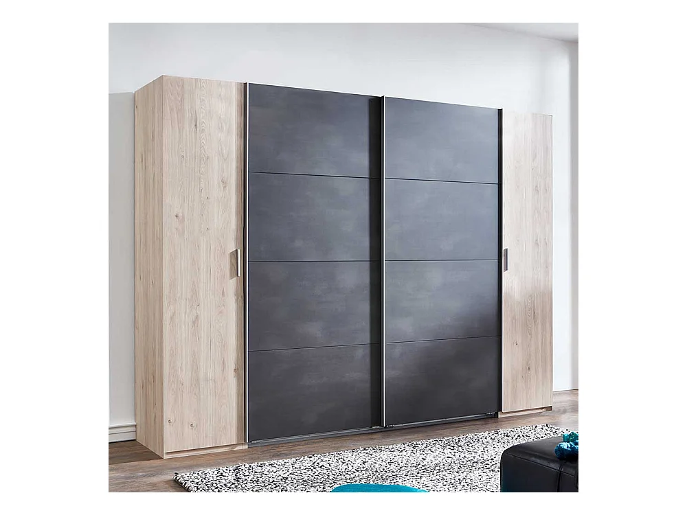 Kleiderschrank Made in Germany in Hickory Holzoptik Schwarzgrau