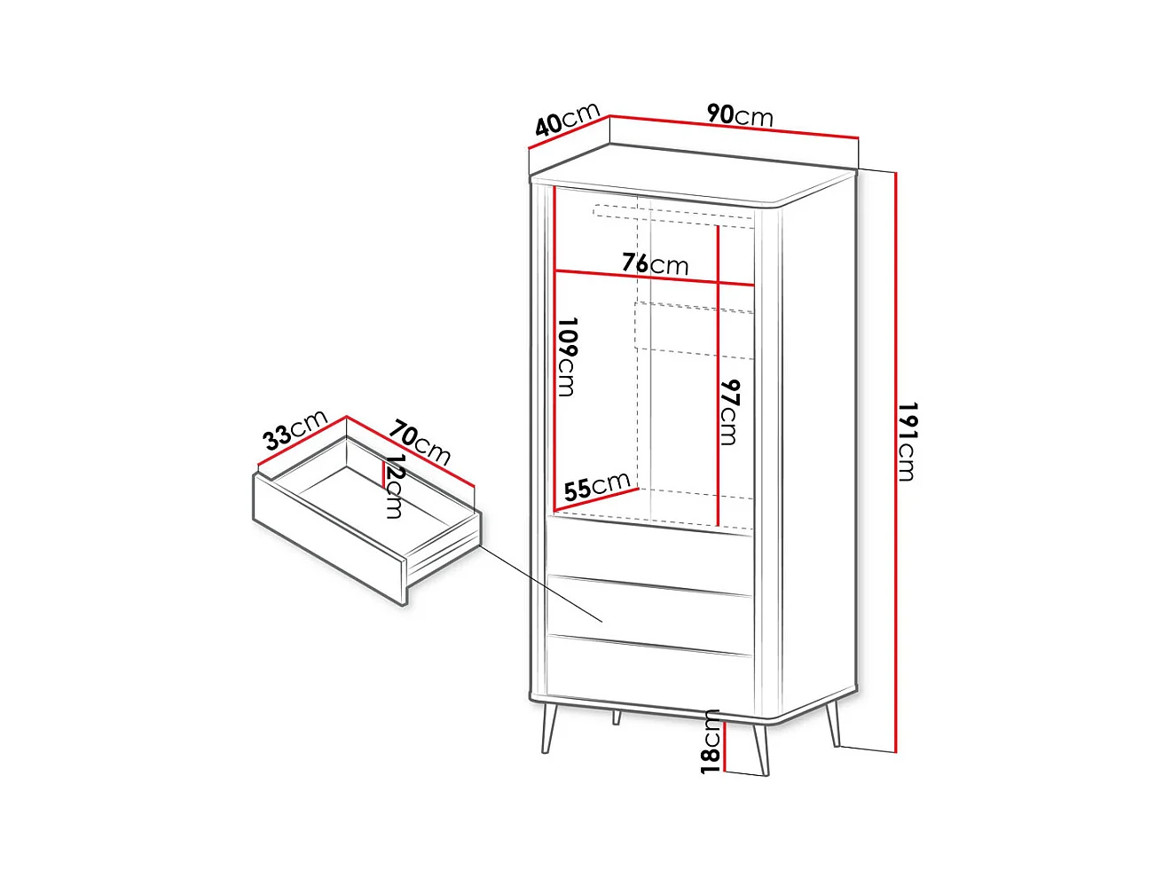 KLEIDERSCHRANK Marly Kaschmir / Graustein 90 / 60 / 191cm