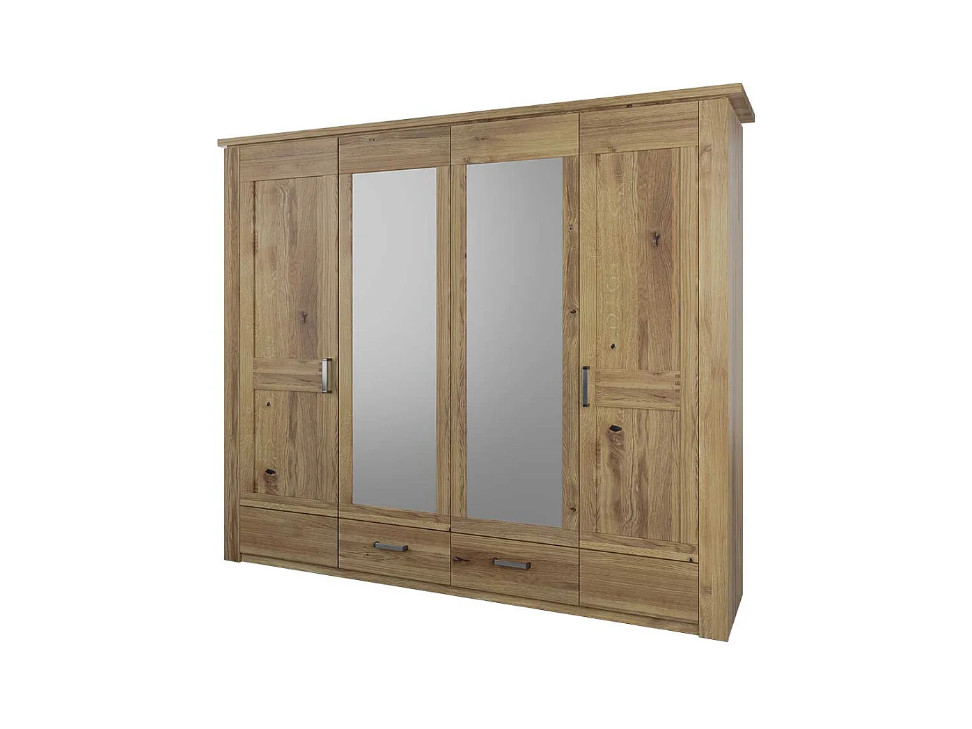 Kleiderschrank Massivholz Holzkleiderschrank mit Spiegeln und zwei Schubladen