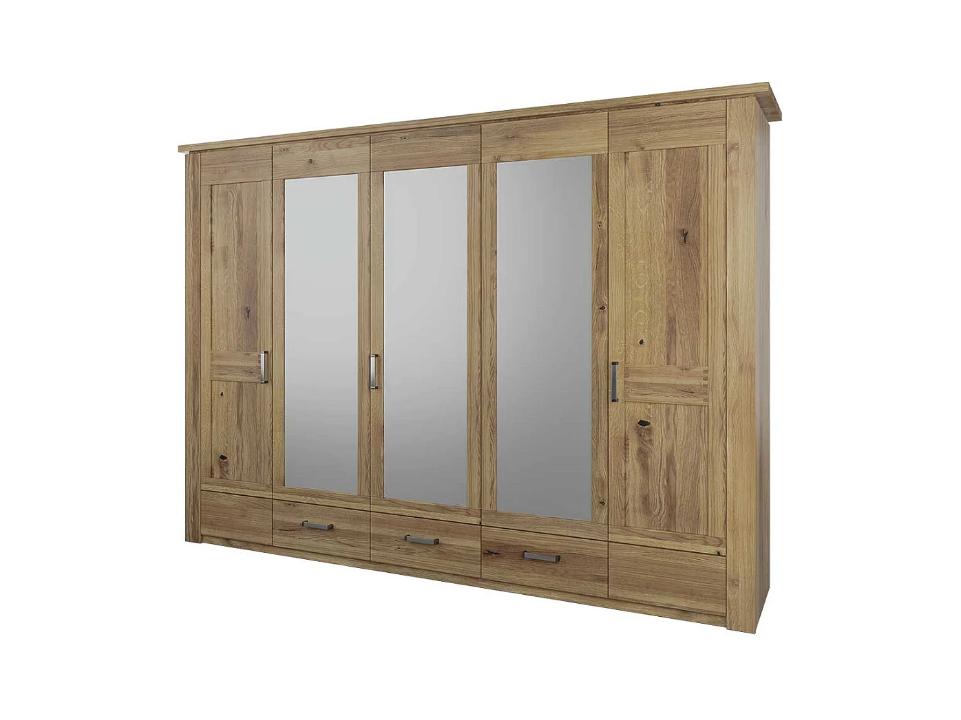 Kleiderschrank Massivholz Schlafzimmerkleiderschrank mit Spiegeln und Metallgriffen