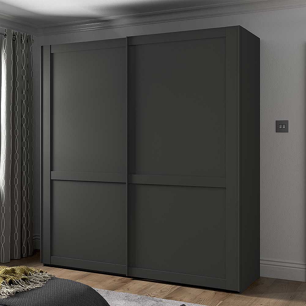 Kleiderschrank mit 2 Schiebetüren in Dunkelgrau Made in Germany