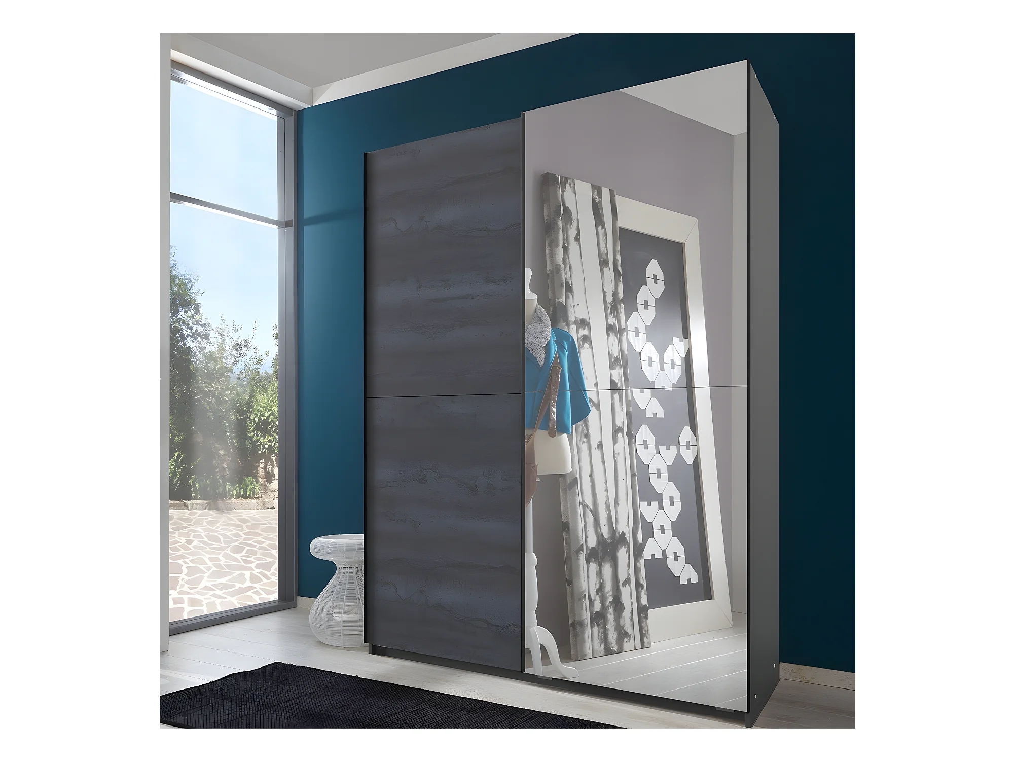 Kleiderschrank mit 2 Schiebetüren, davon 1 Spiegel - L135 cm