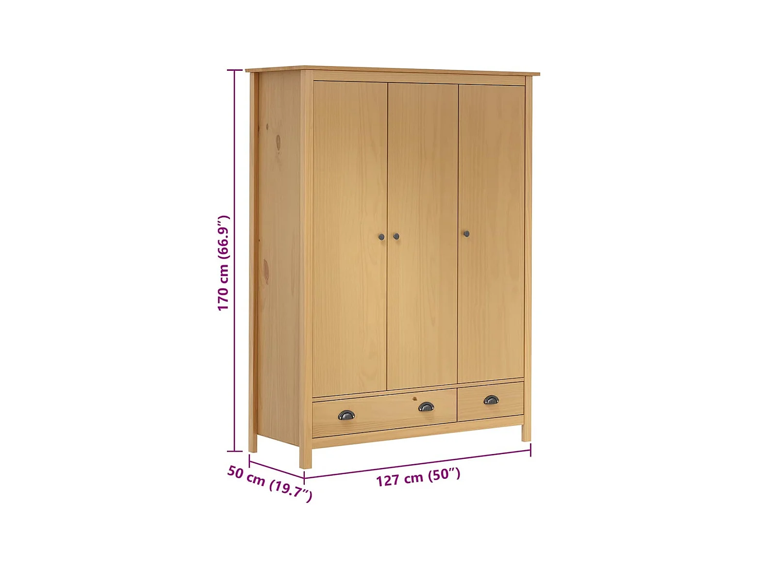 Kleiderschrank mit 3 Türen Hill 127x50x170cm Massivholz Kiefer