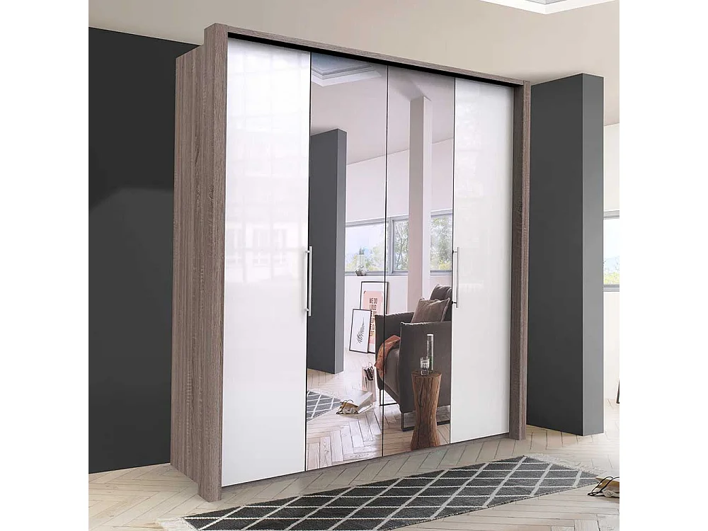 Kleiderschrank mit Falttüren und Spiegel zweifarbig