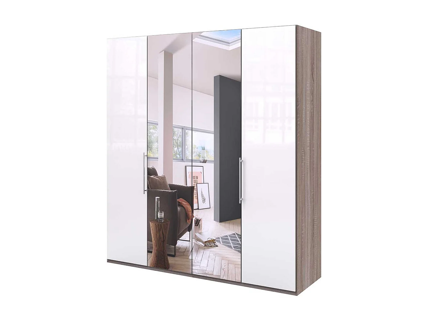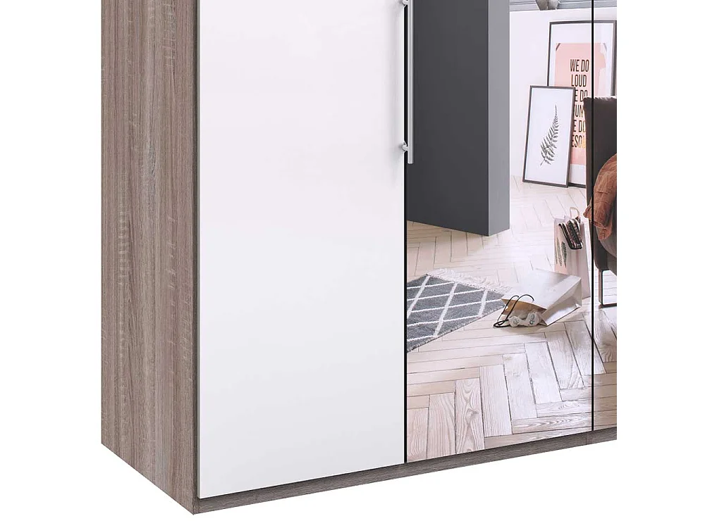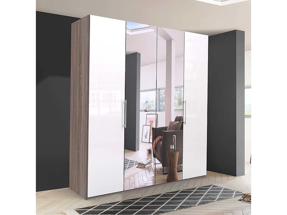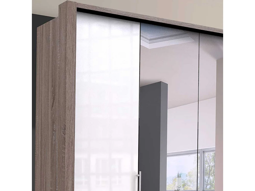 Kleiderschrank mit Falttüren und Spiegel zweifarbig