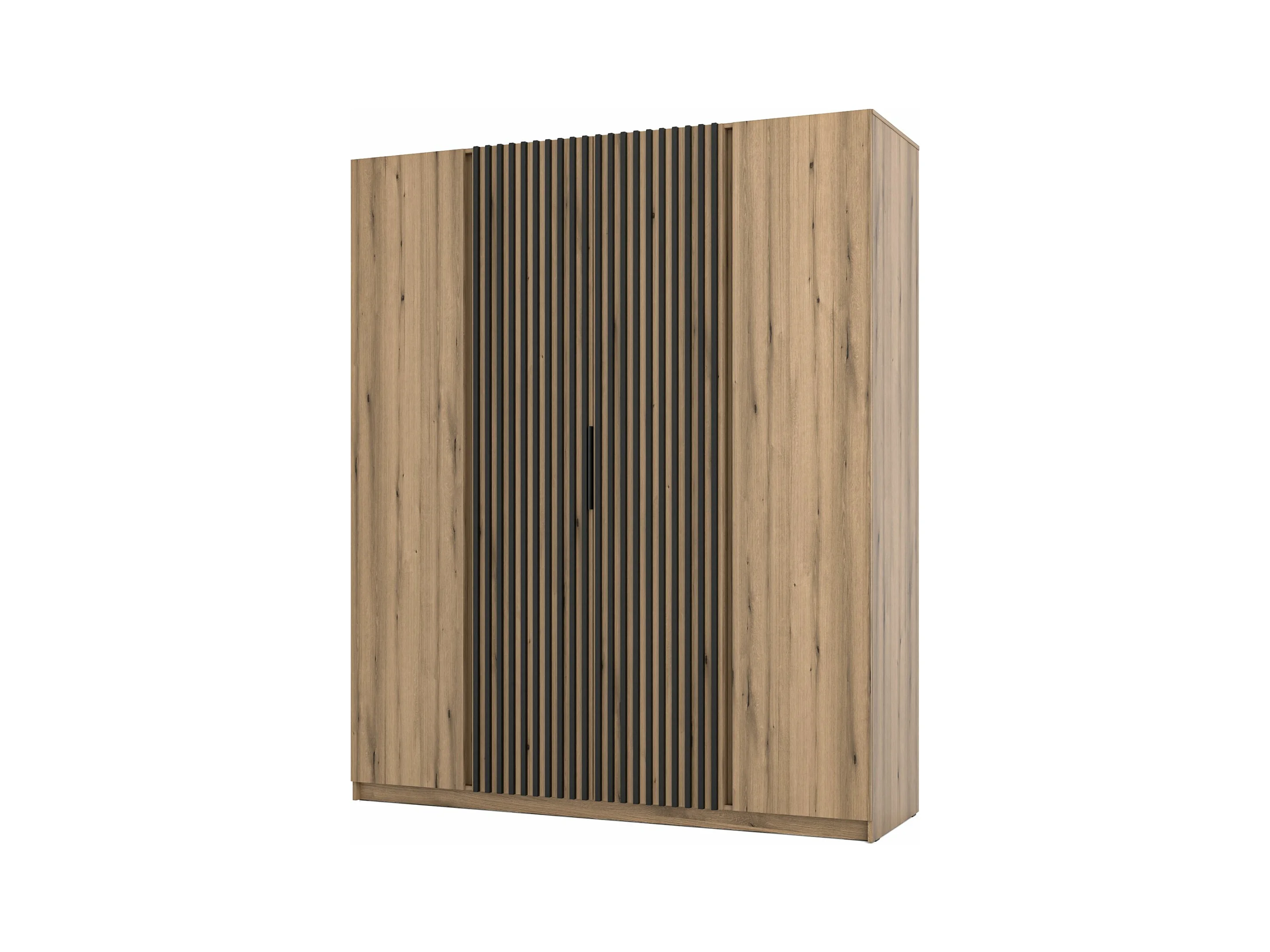 Kleiderschrank mit Lamellen in der Mitte - 200 cm - Eiche - KAJA