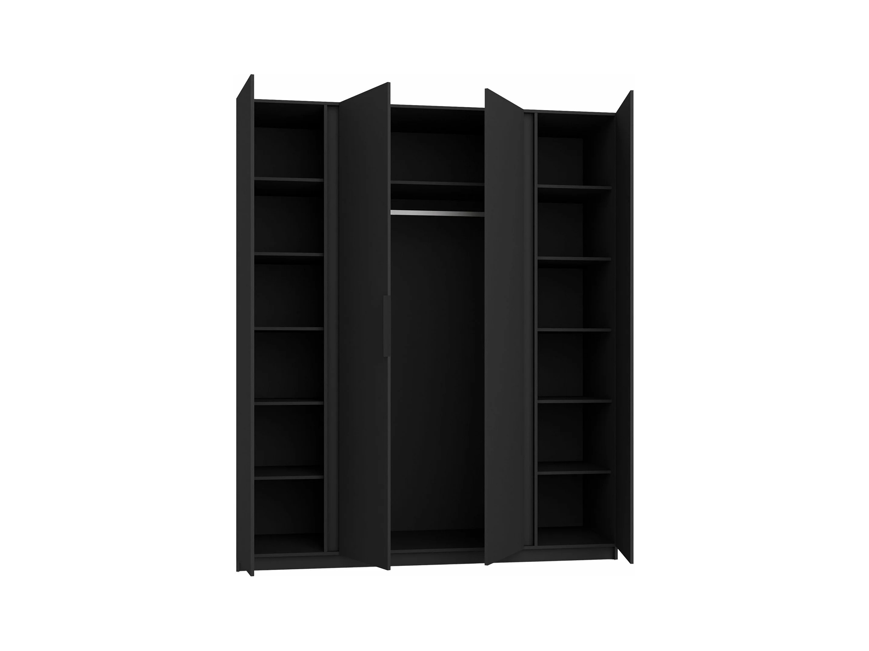 Kleiderschrank mit Lamellen in der Mitte - 200 cm - schwarz/Eiche - KAJA