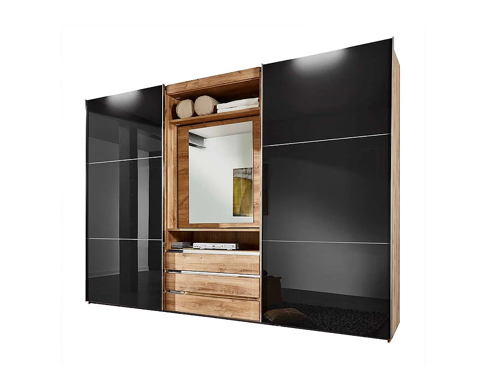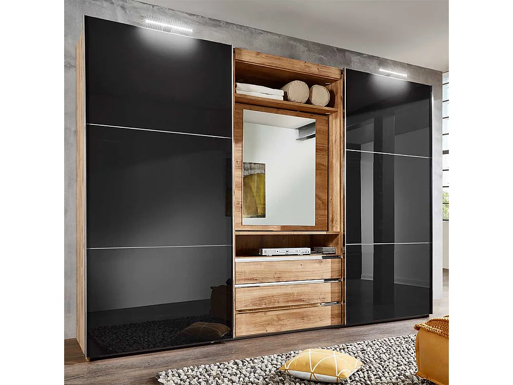Kleiderschrank mit offenem Fach in Dunkelgrau Plankeneiche Holzoptik