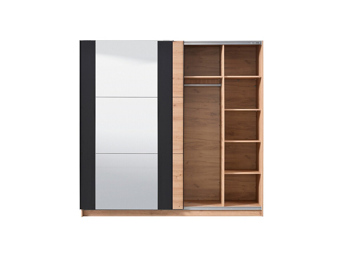 Kleiderschrank mit Spiegel PHILADELPHIE - 2 Schiebetüren - Breite: 217 cm - Eiche & Schwarz
