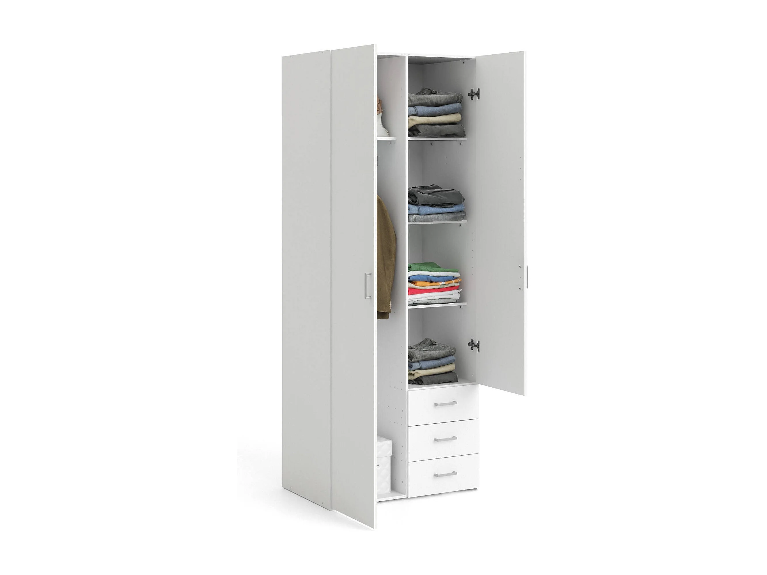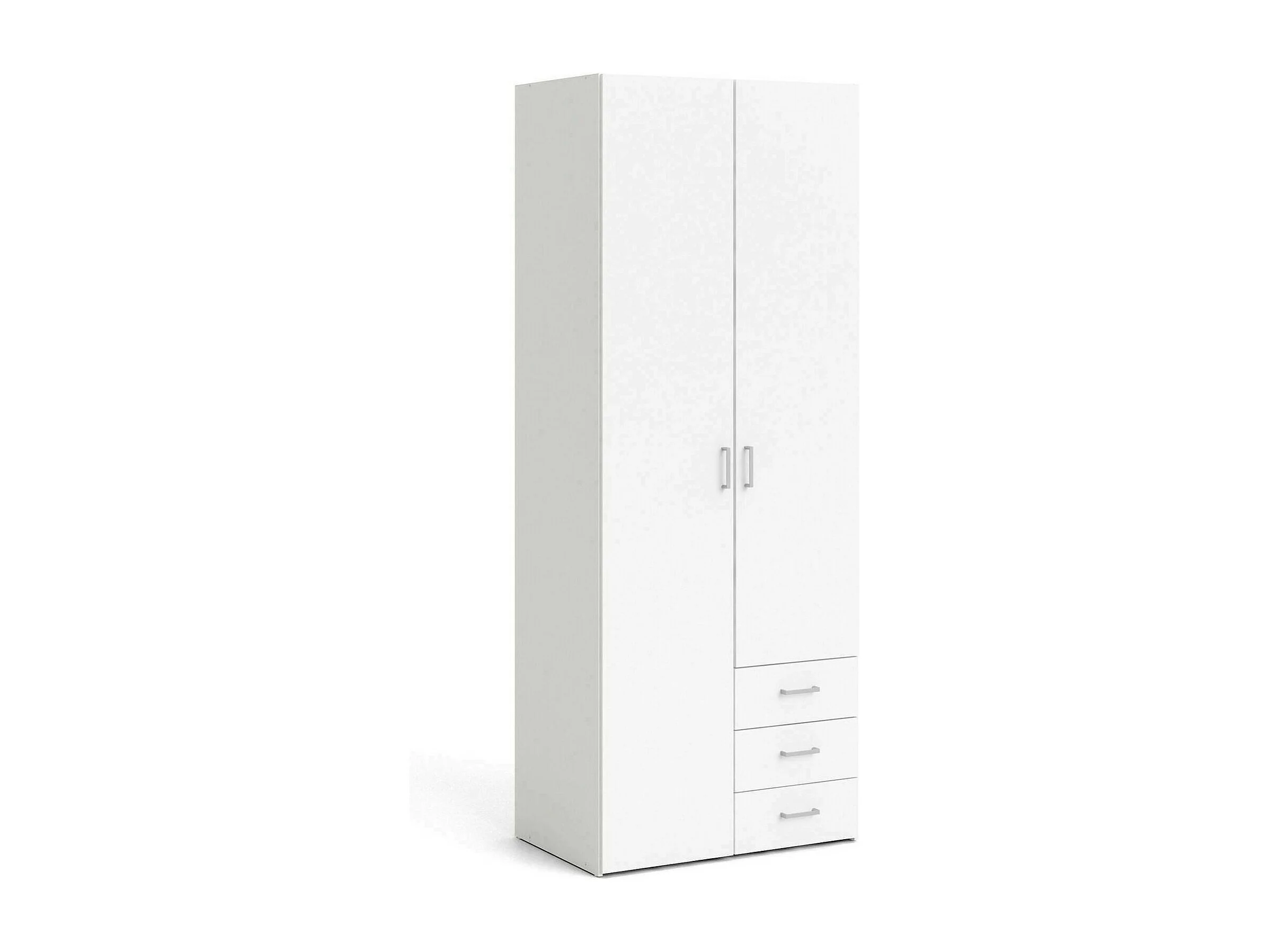 Kleiderschrank mit zwei Türen und drei Schubladen, Farbe Weiß, Maße 77 x 200 x 49,5 cm