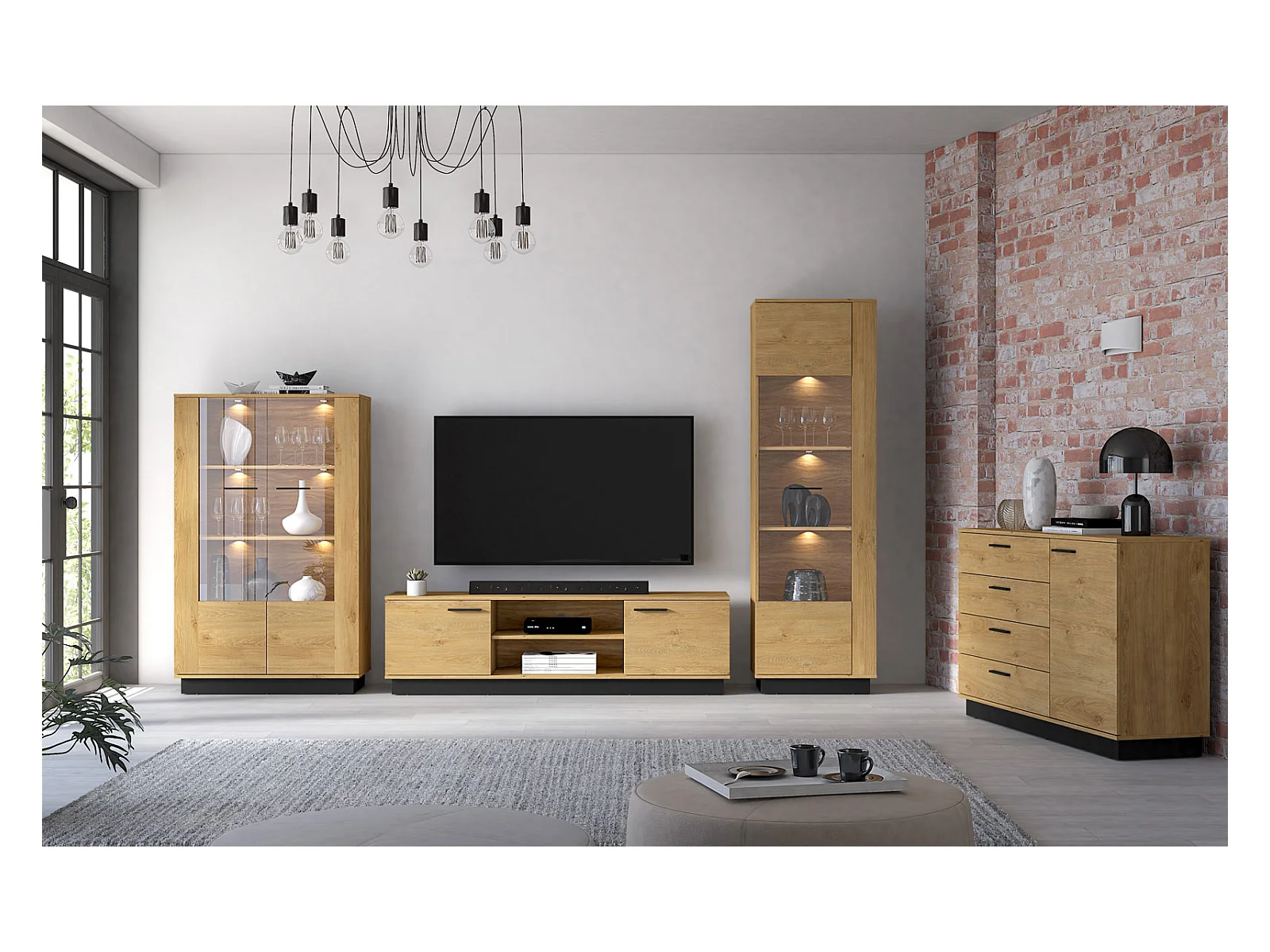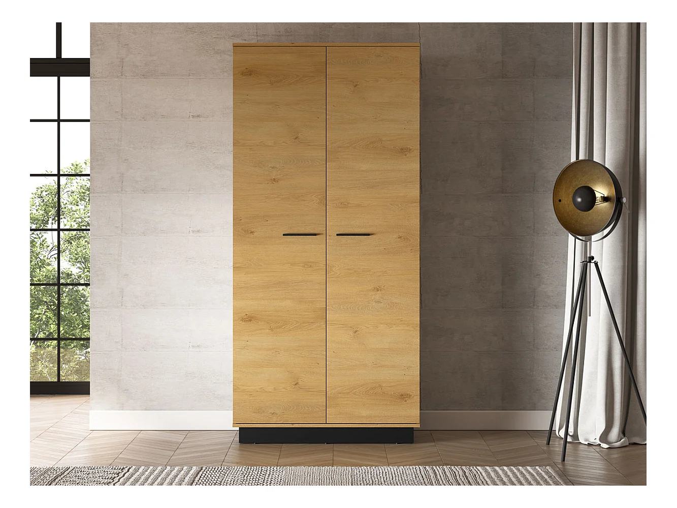 KLEIDERSCHRANK Modesto Eiche Style hell / Schwarz 92 / 55 / 196 cm