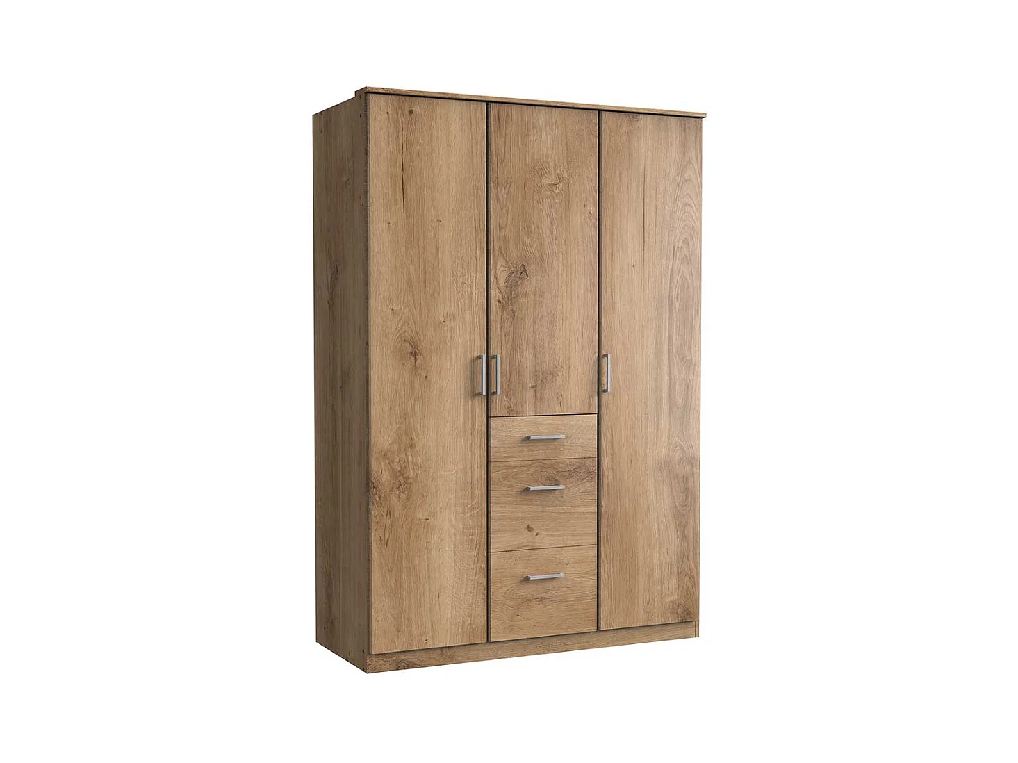 Kleiderschrank Plankeneiche NB mit drei Schubladen 199 cm hoch