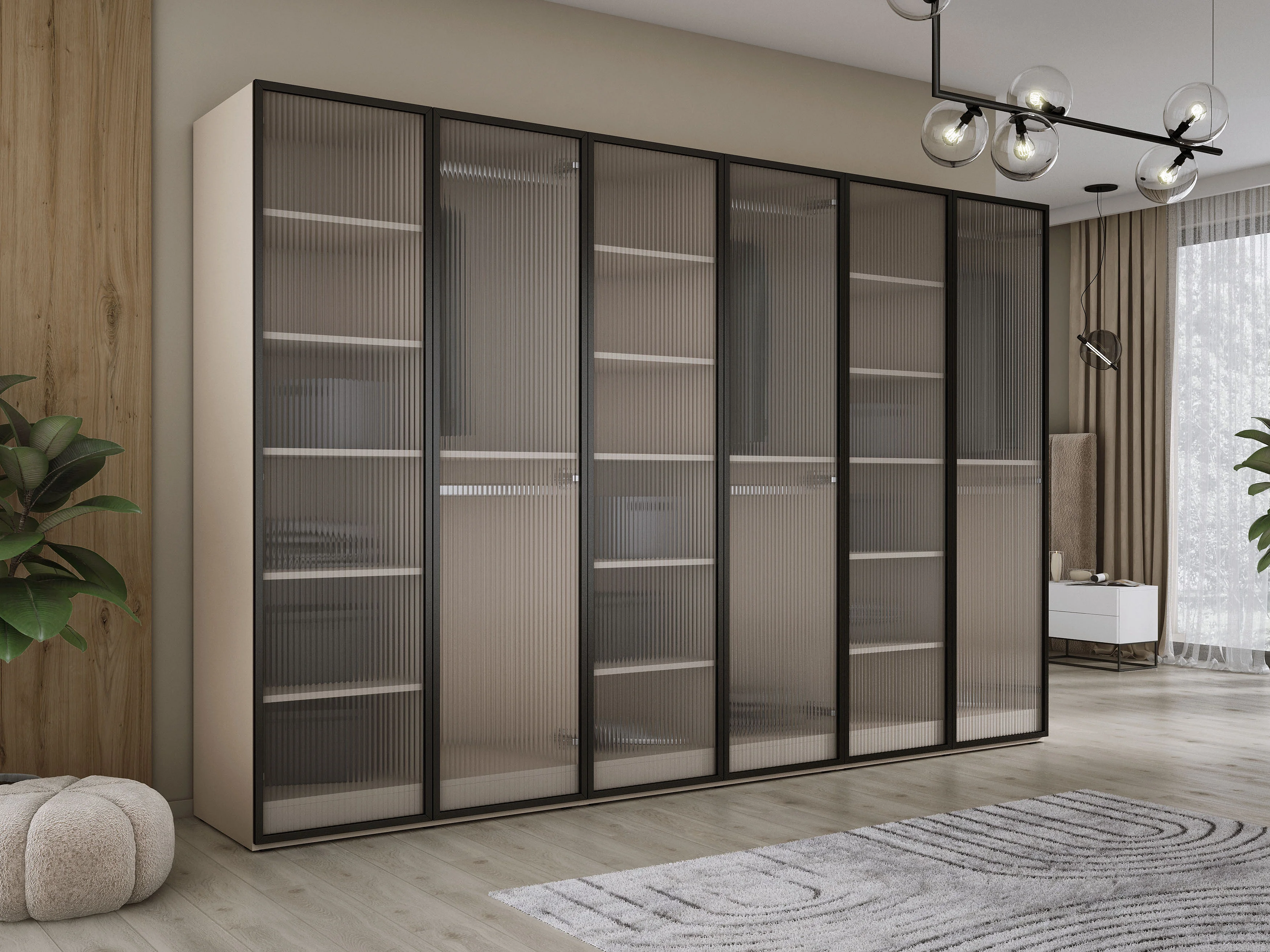 Kleiderschrank: Platingrau / Geriffeltes Glas, 300 x 200 x 51 cm