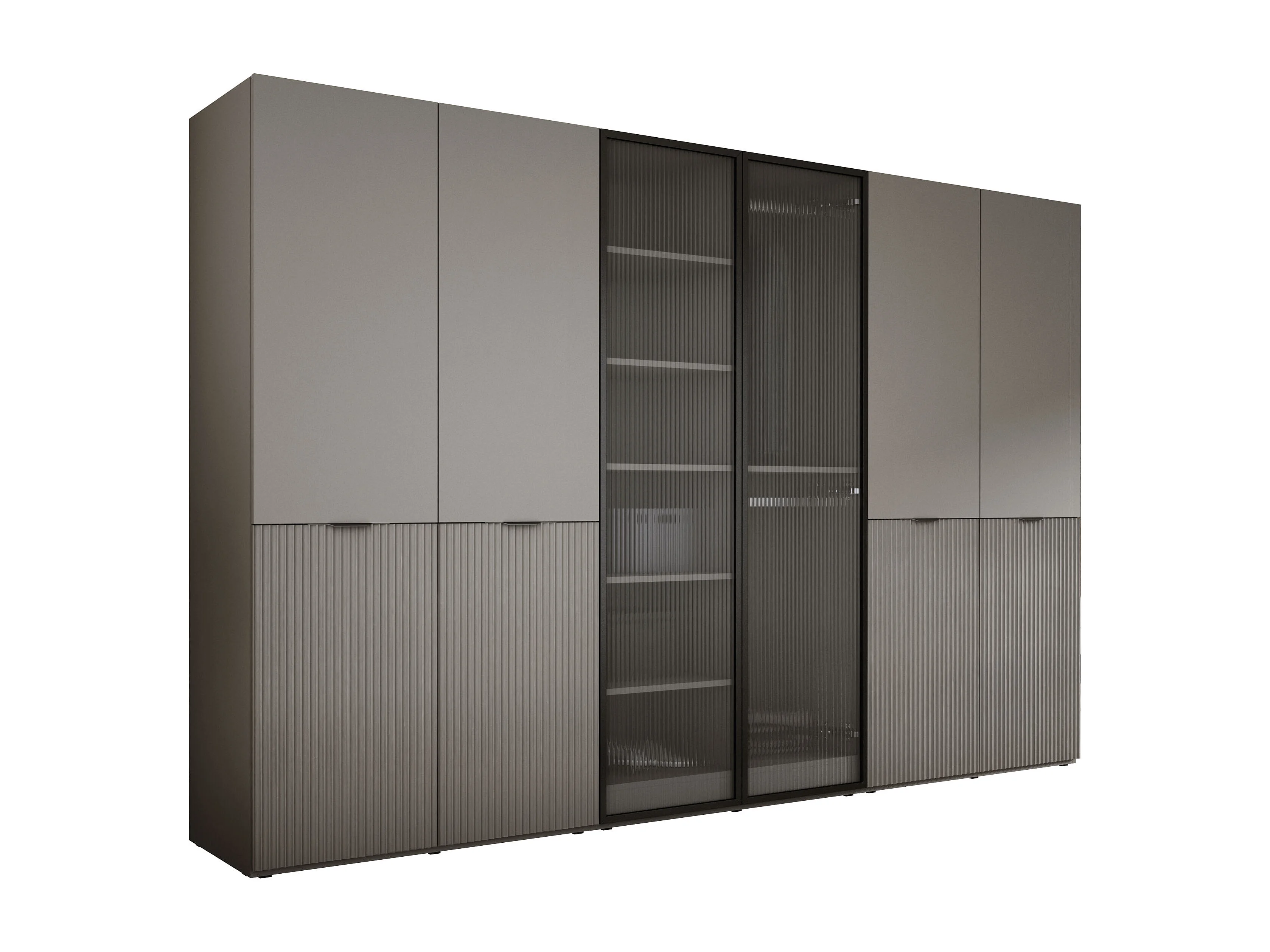 Kleiderschrank: Platingrau / Geriffeltes Glas, 300 x 200 x 51 cm