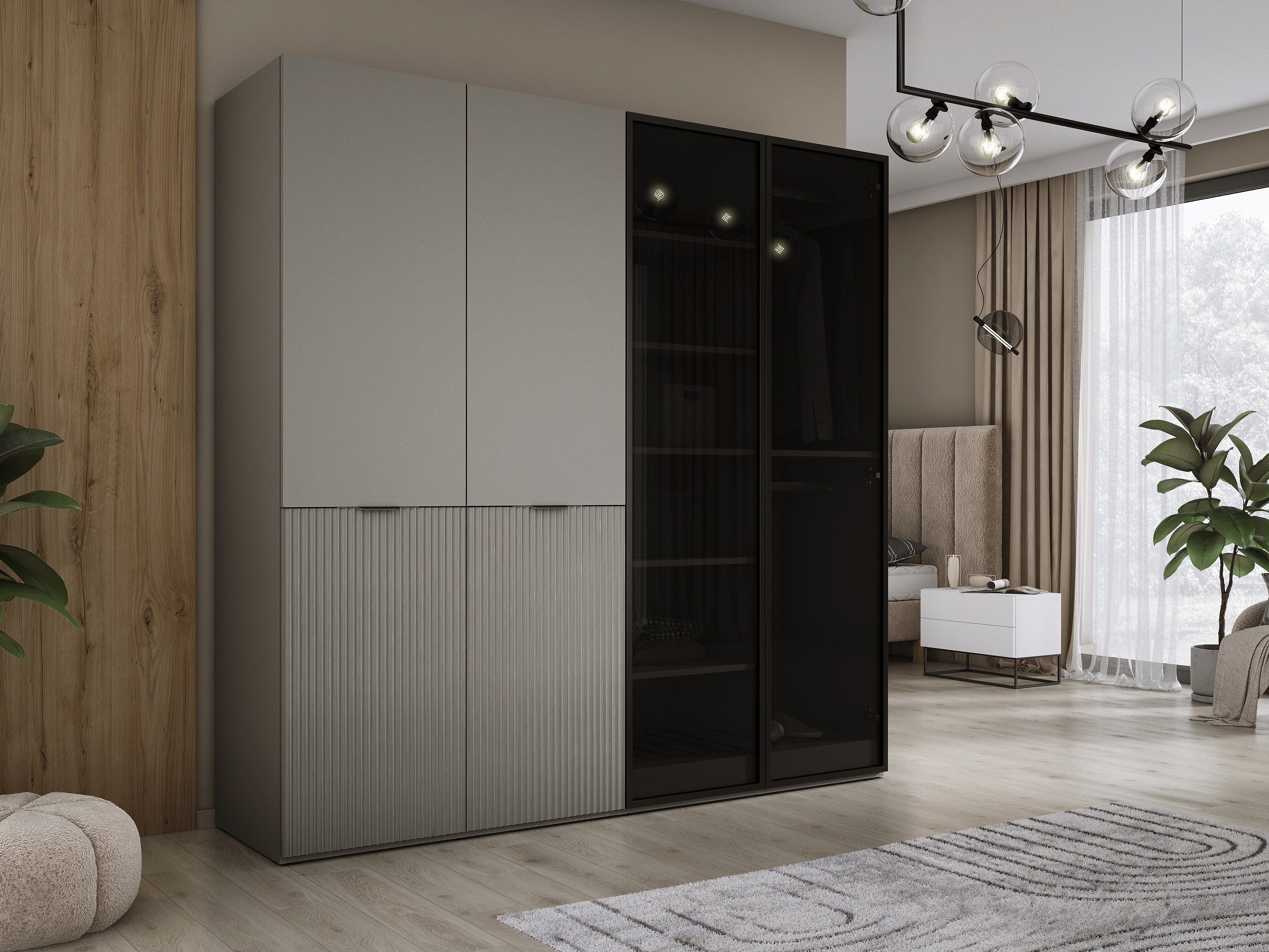 Kleiderschrank, Platingrau / Sandbeige, 2 x 100 x 200 x 51 cm
