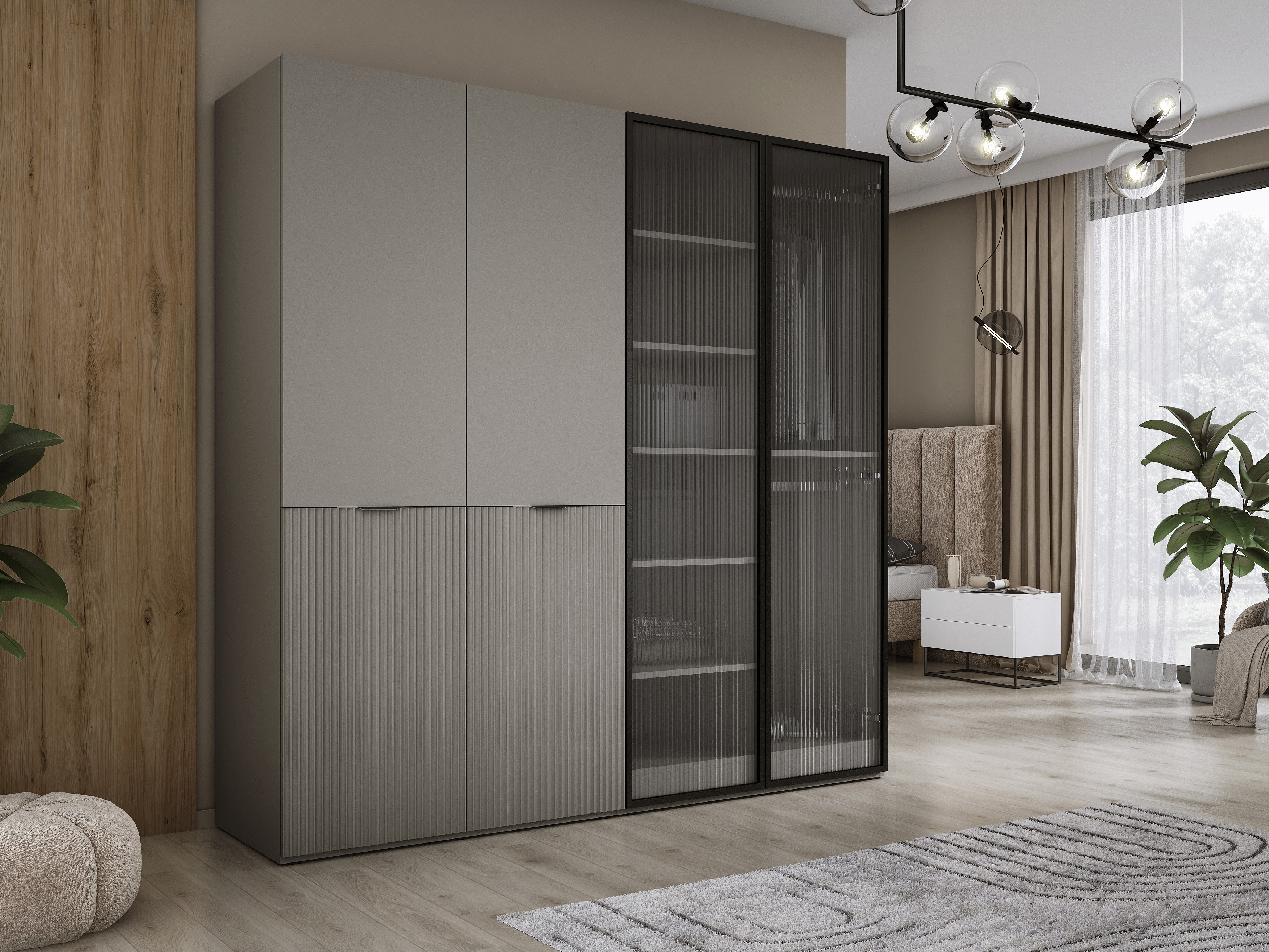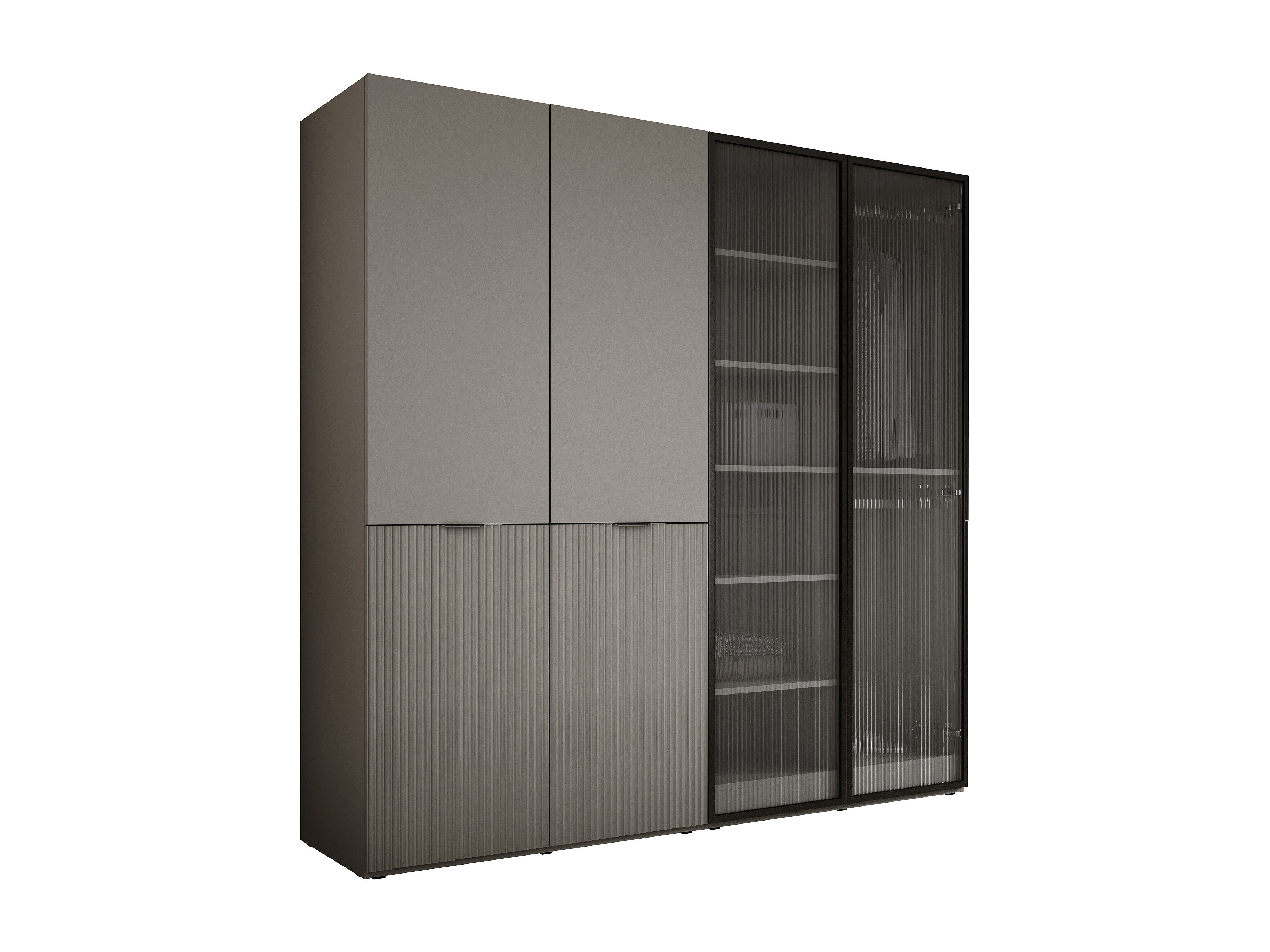 Kleiderschrank, Platingrau / Sandbeige / klares Glas, 2 x 100 x 200 x 51 cm