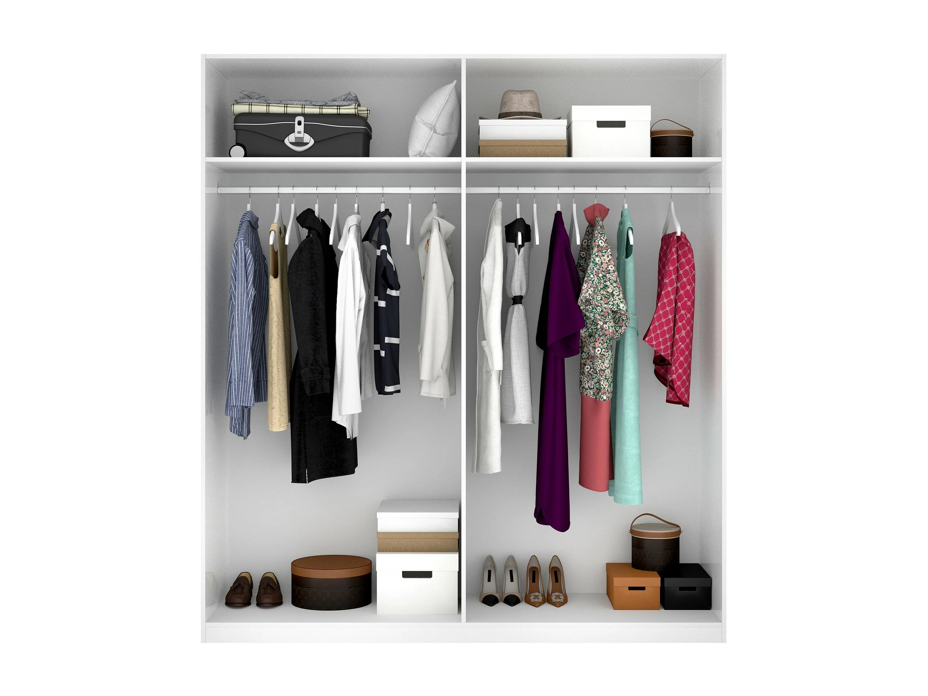 Kleiderschrank Prado, Garderobe für Schlafzimmer, Kleiderschrank mit 4 Flügeltüren, 180x52h204 cm, Weiß
