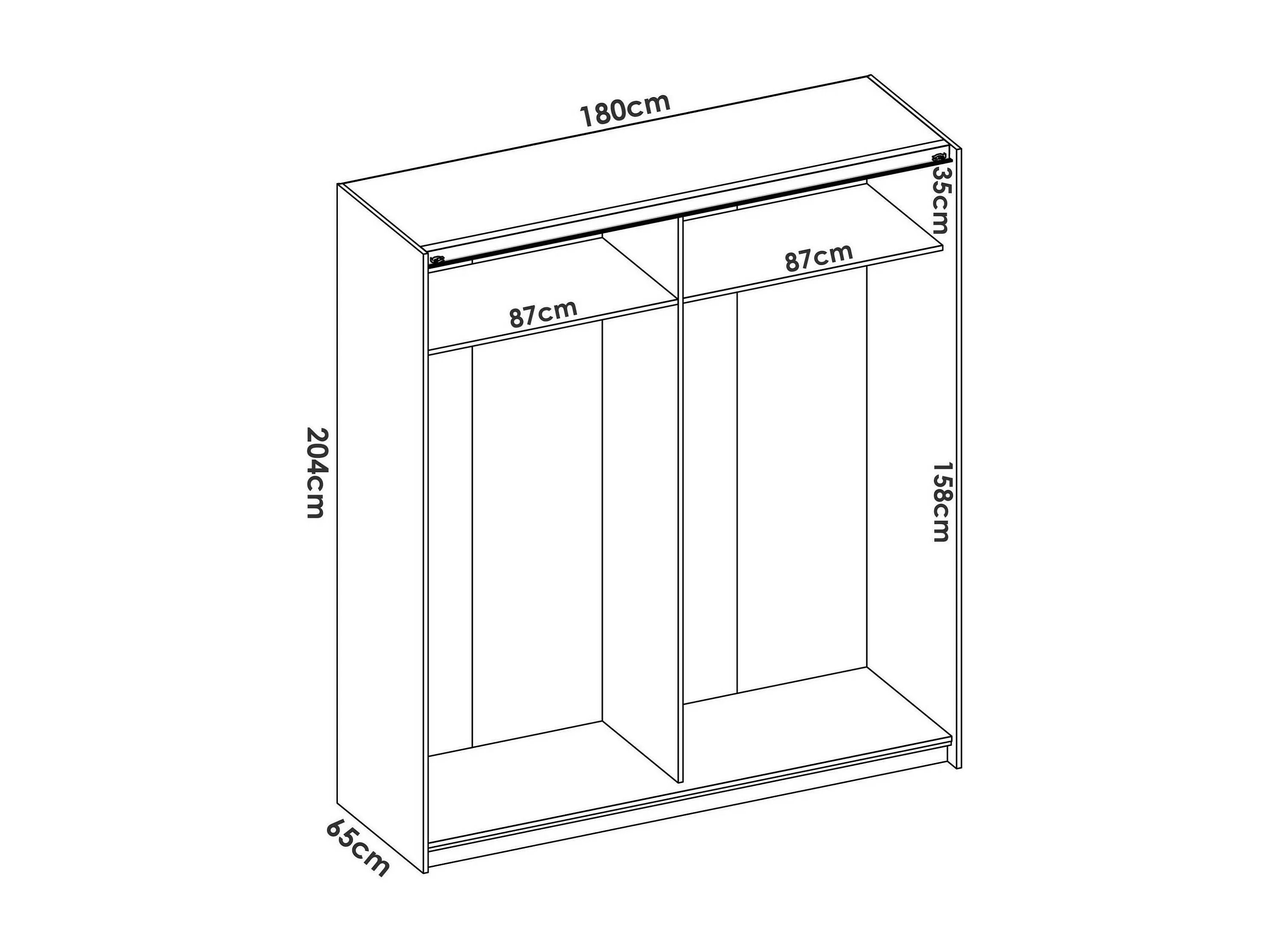 Kleiderschrank Saltoro, Garderobe für Schlafzimmer, Kleiderschrank mit 2 Schiebetüren, 180x65h204 cm, Weiß