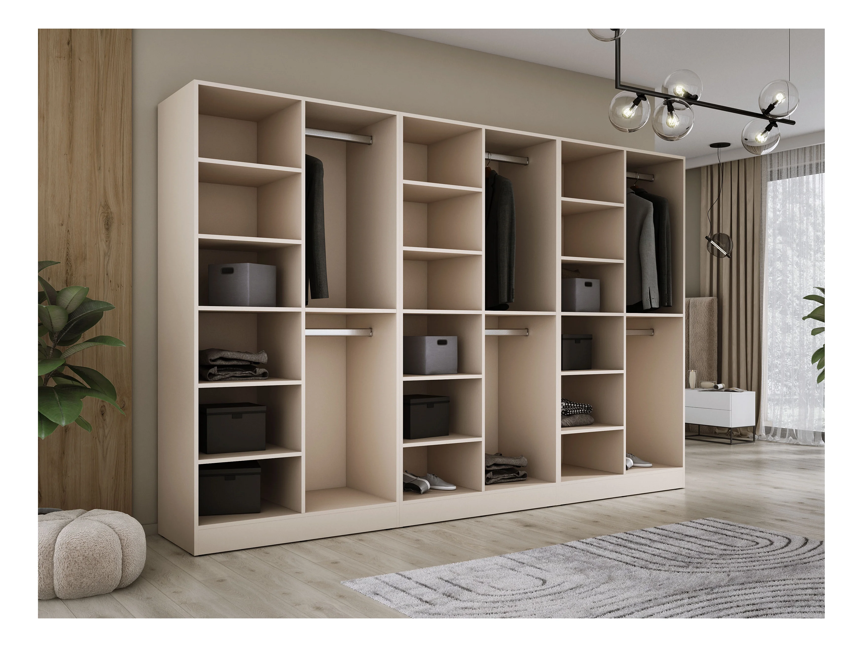 Kleiderschrank, Sandbeige / klares Glas, 3 x 100 x 200 x 51 cm