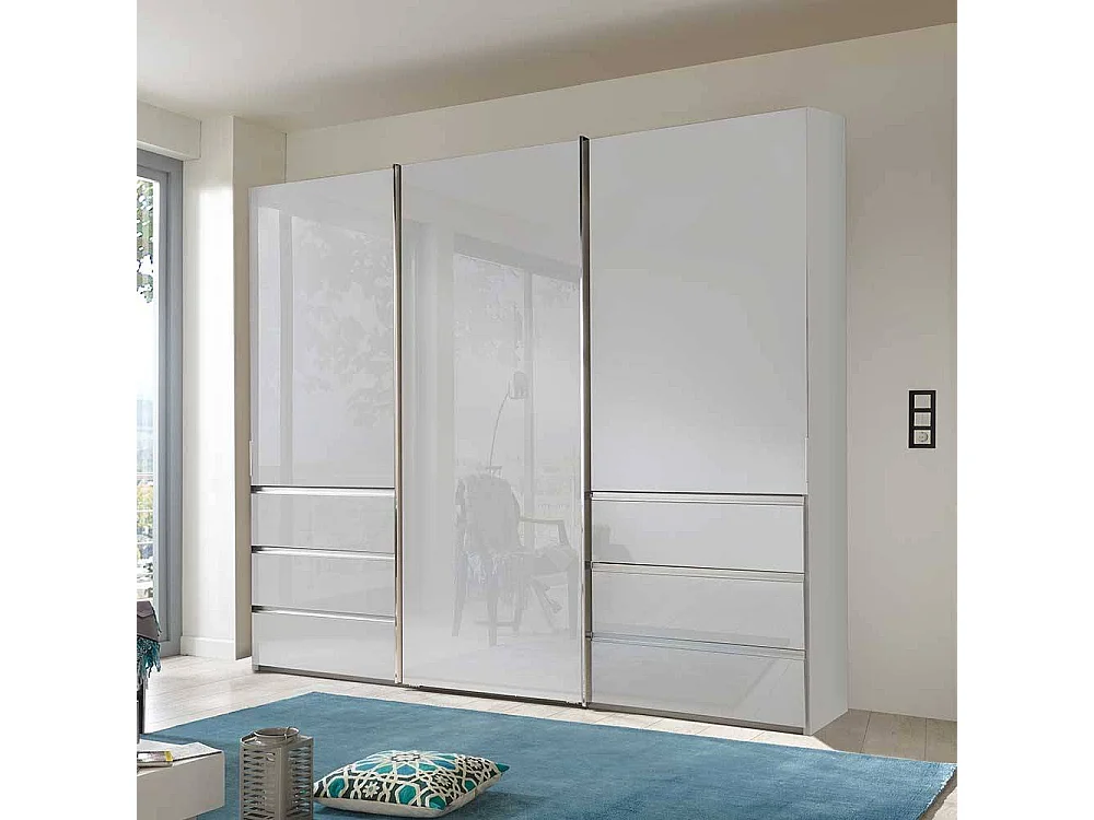 Kleiderschrank Schiebetüren mit sechs Schubladen Weiß