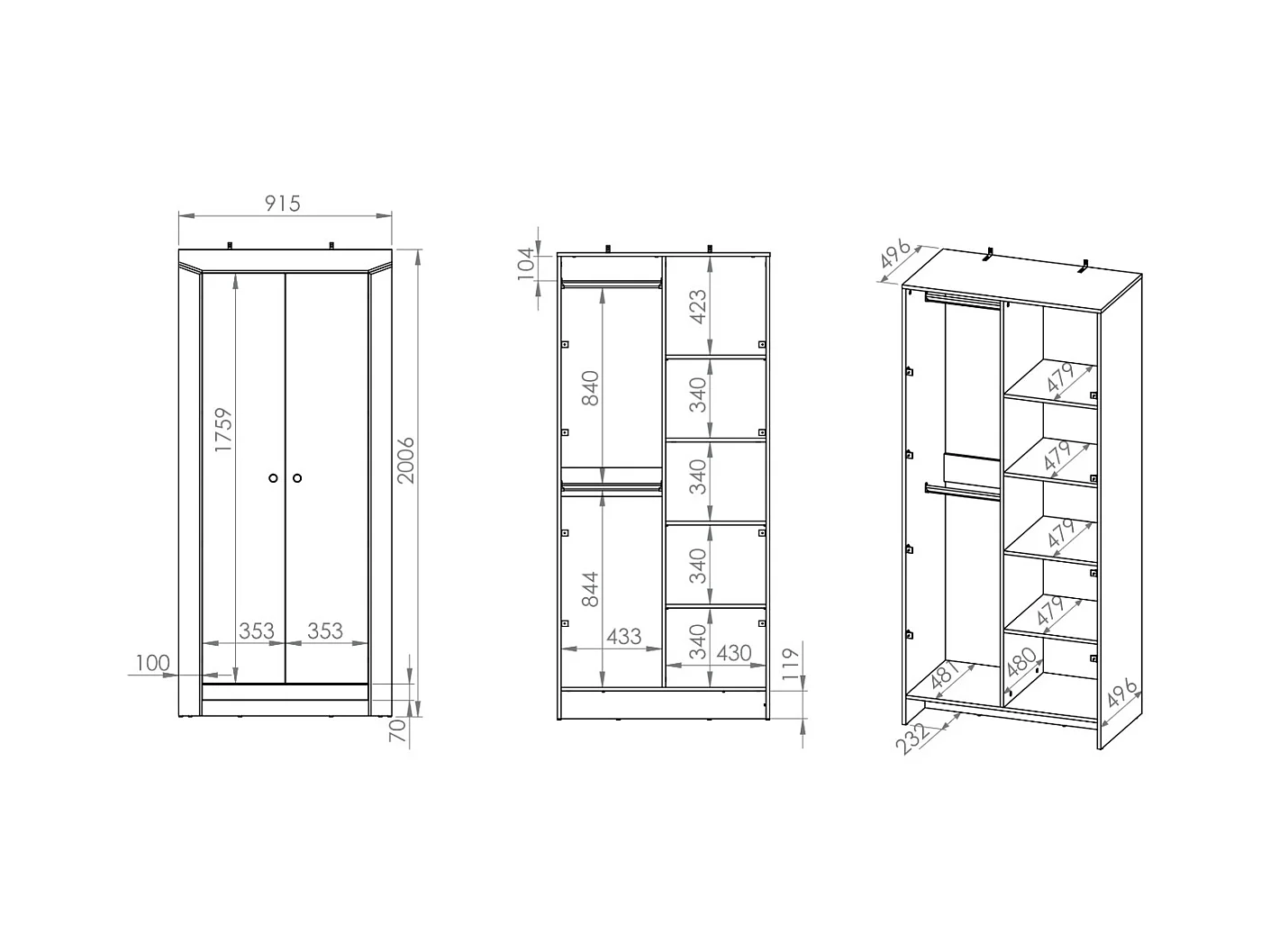 KLEIDERSCHRANK Terni silbergrau 91,5 / 51,5 / 200,5cm