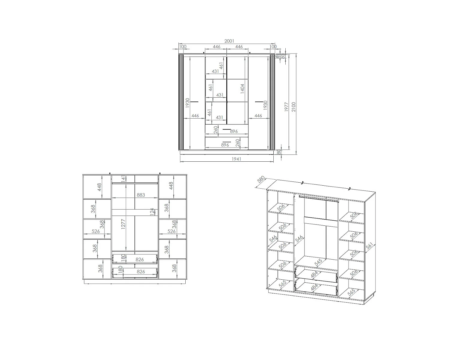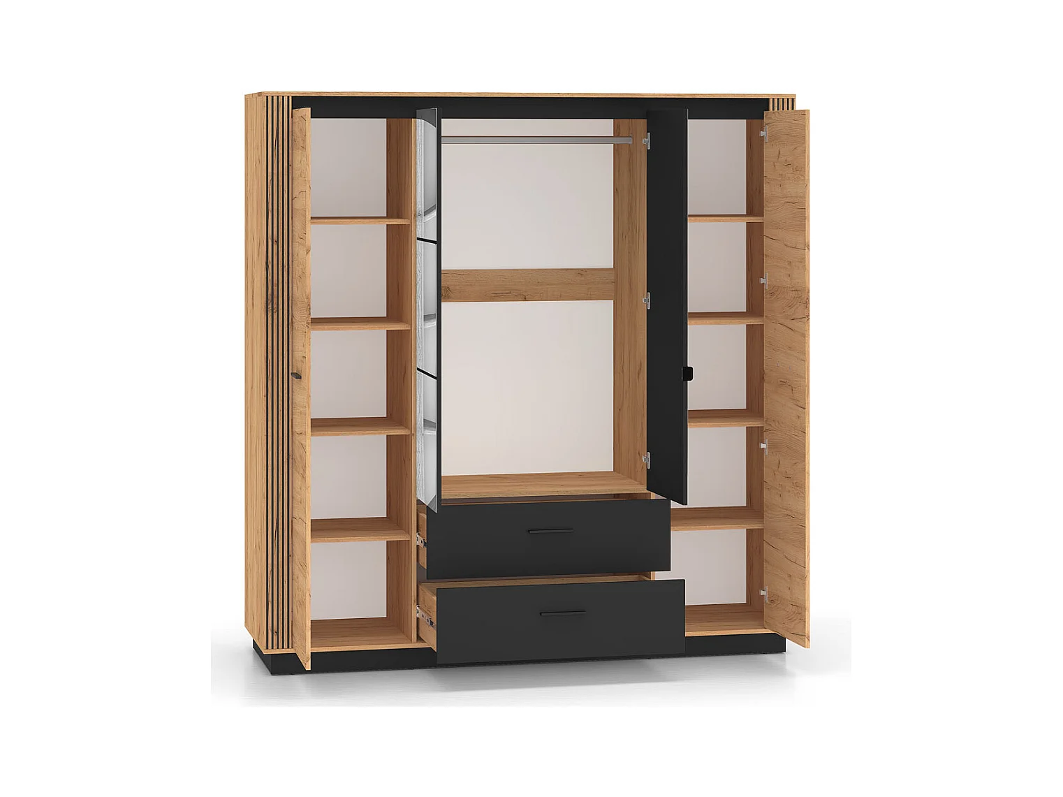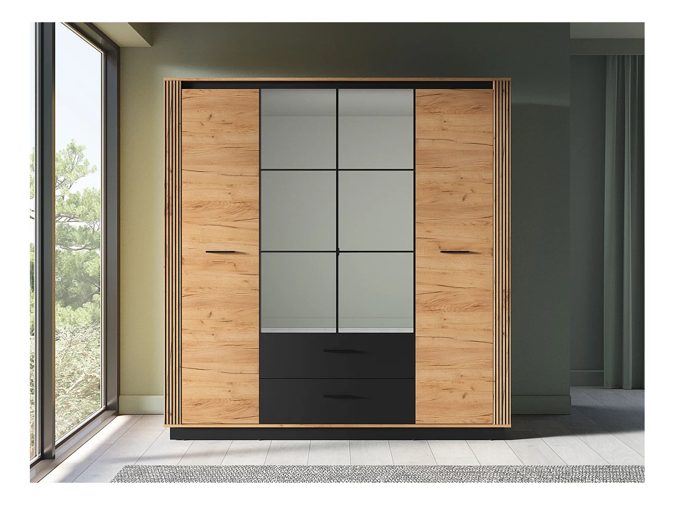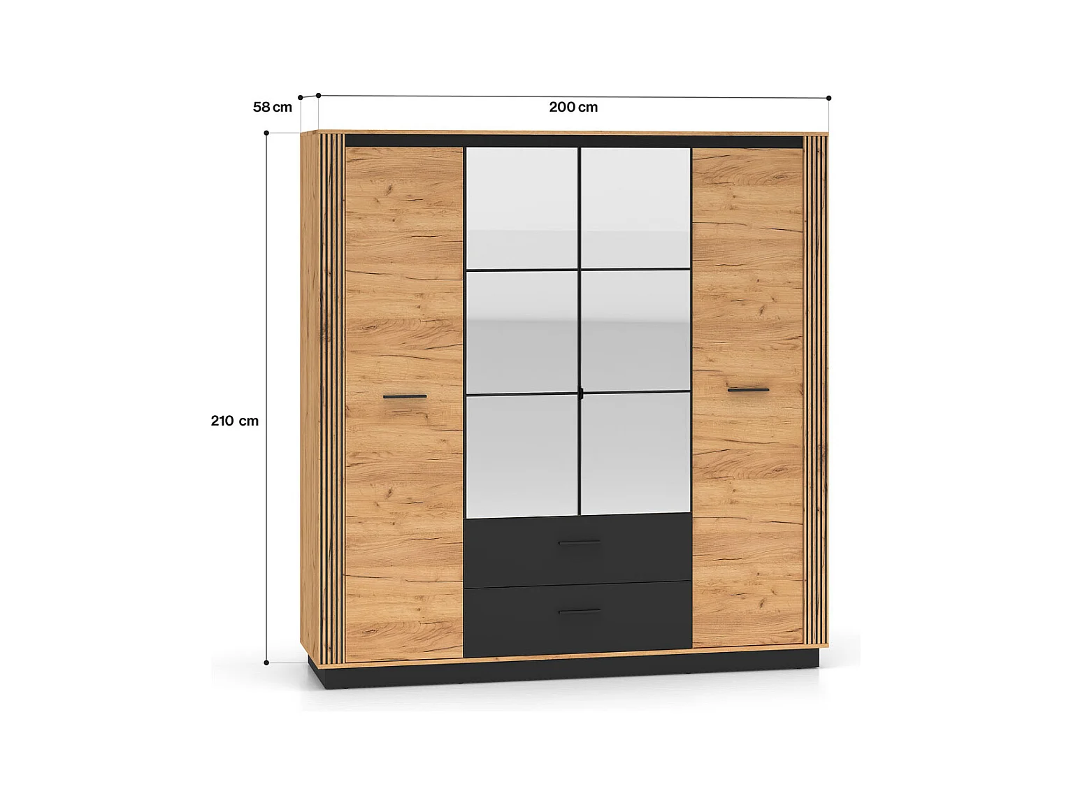 KLEIDERSCHRANK Urso Gold Craft Eiche / Schwarz 200 / 58 / 210 cm