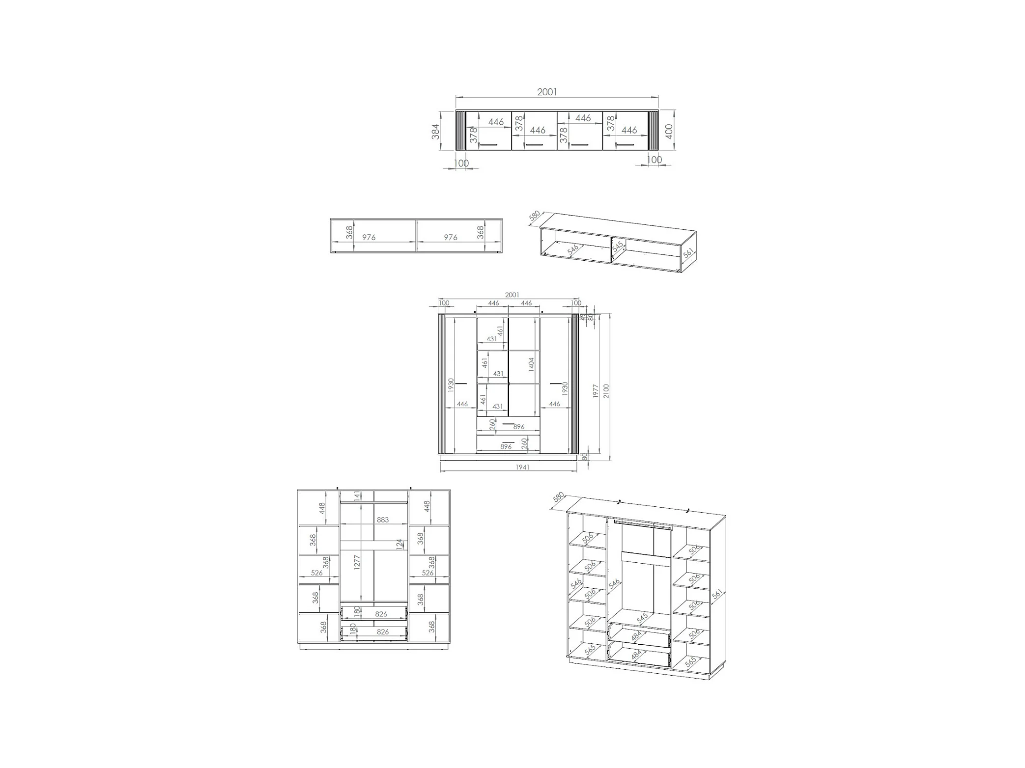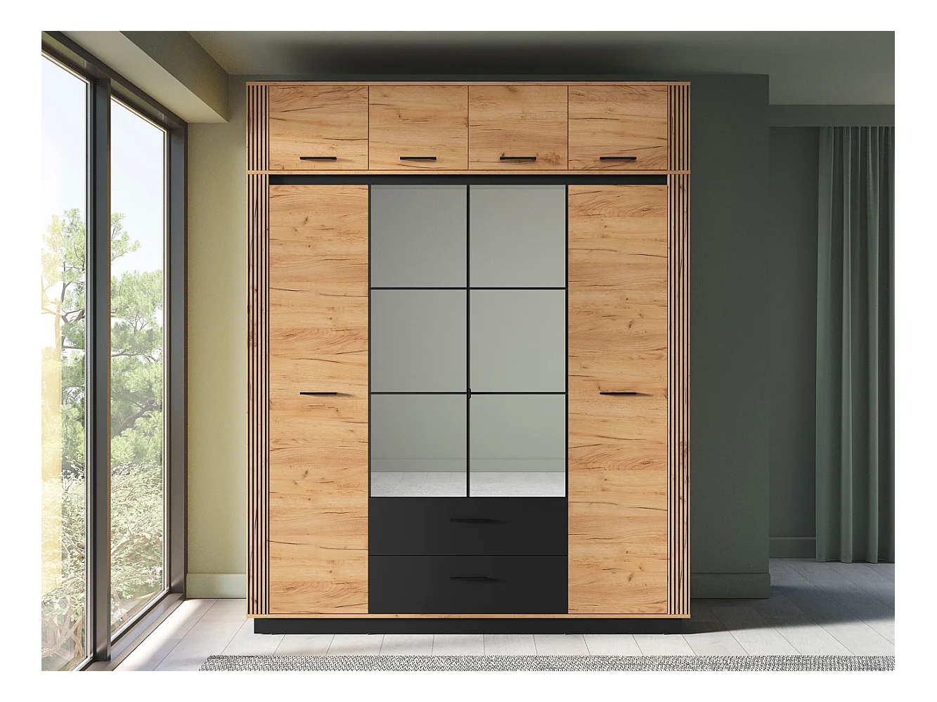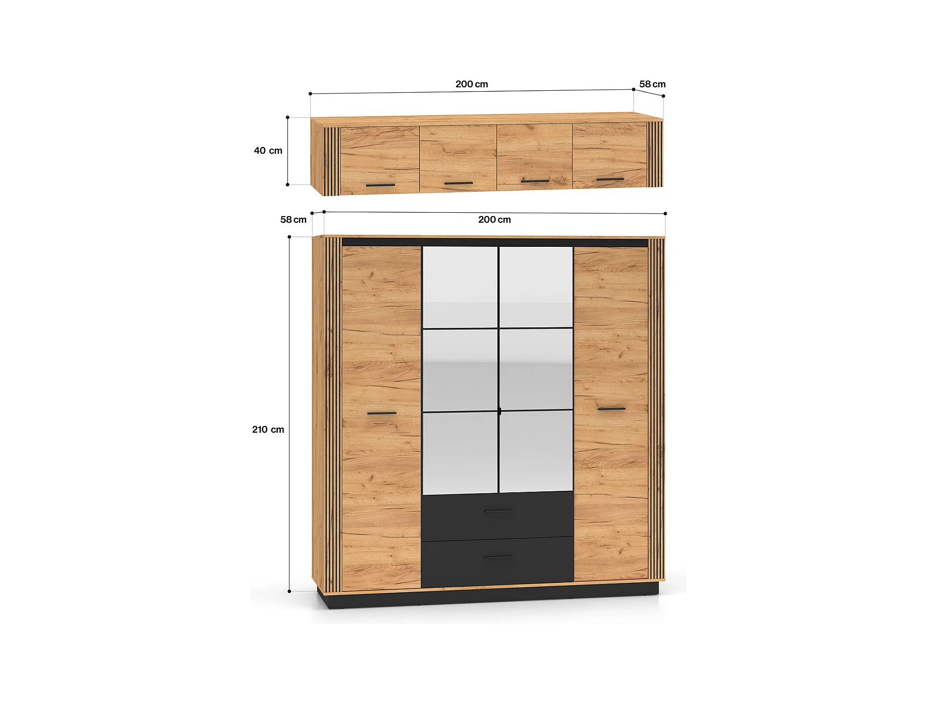 KLEIDERSCHRANK Urso Gold Craft Eiche / Schwarz 200 / 58 / 250 cm
