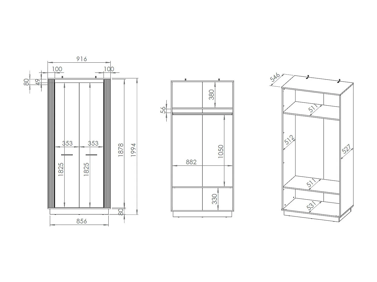 KLEIDERSCHRANK Urso Gold Craft Eiche / Schwarz 92 / 55 / 200cm
