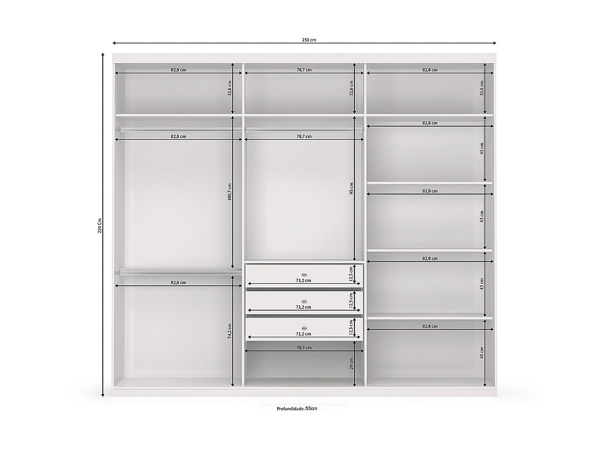 - Ca.-Maße Kleiderschrank: B 250 cm x T 53 cm x H 224 cm