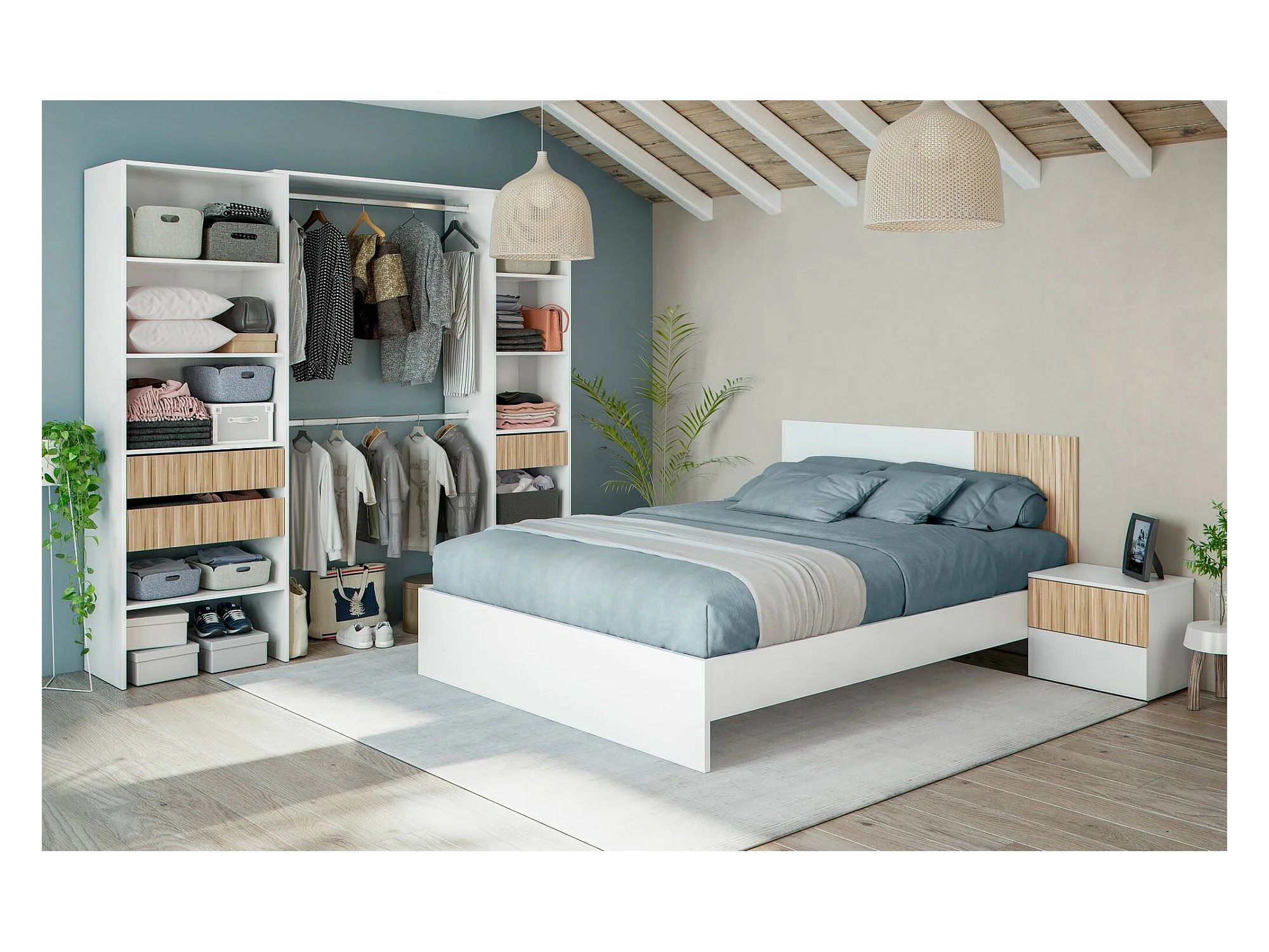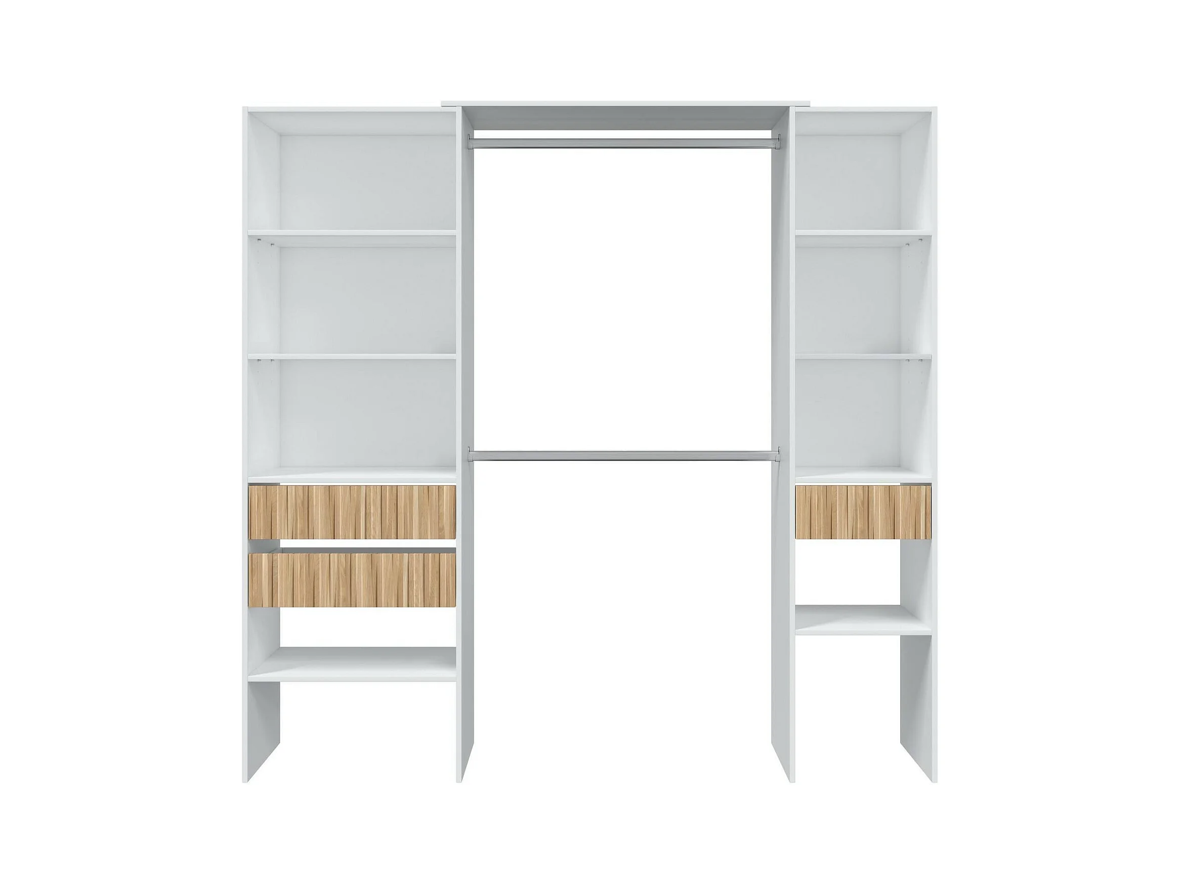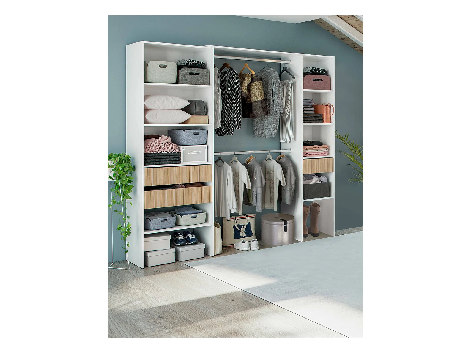 Kleiderschrank Worland, Schlafzimmermöbel, Kleiderbügel mit Regalen und 3 Schubladen, 196 x 40 x 187 cm, Weiß und Eiche
