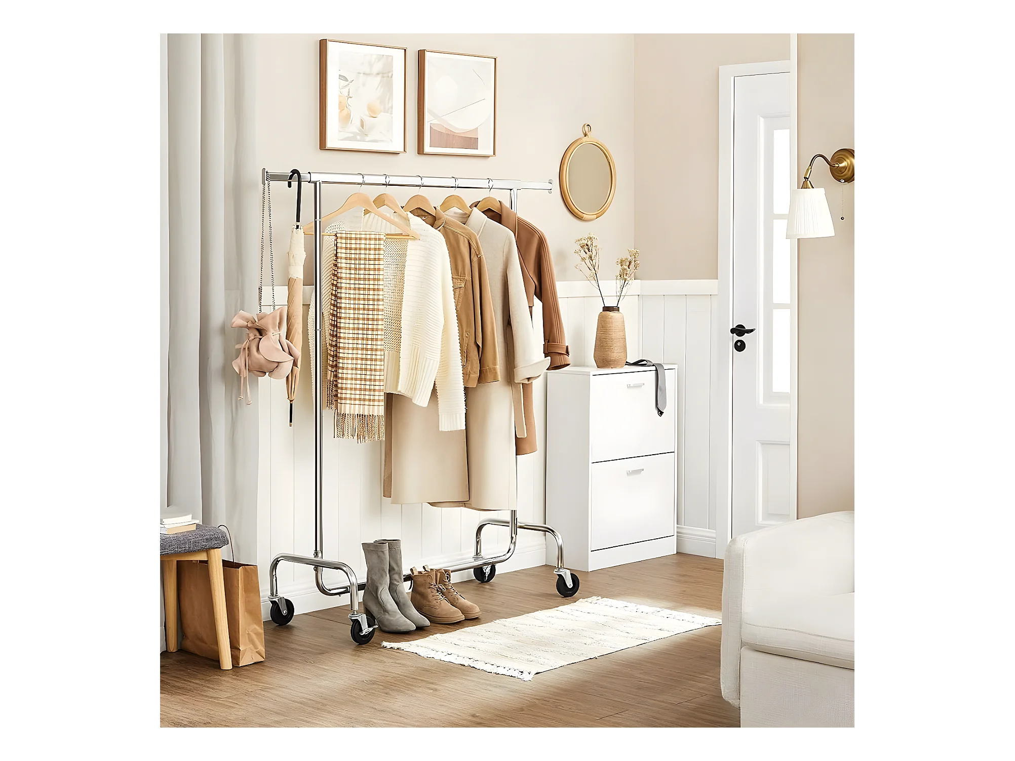 Kleiderständer mit ausziehbarer Kleiderstange 110-150 cm auf Rollen