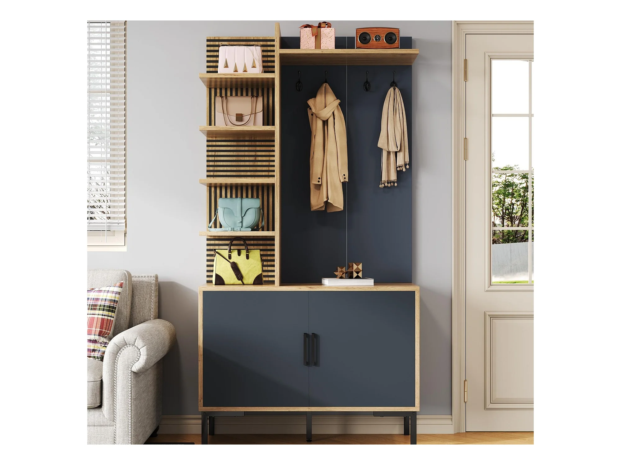 Kleiderständer-Set für den Eingangsbereich 100x38.5x190.5 cm - mit Haken - 2 Türen - Verstellbare Regale - Natur