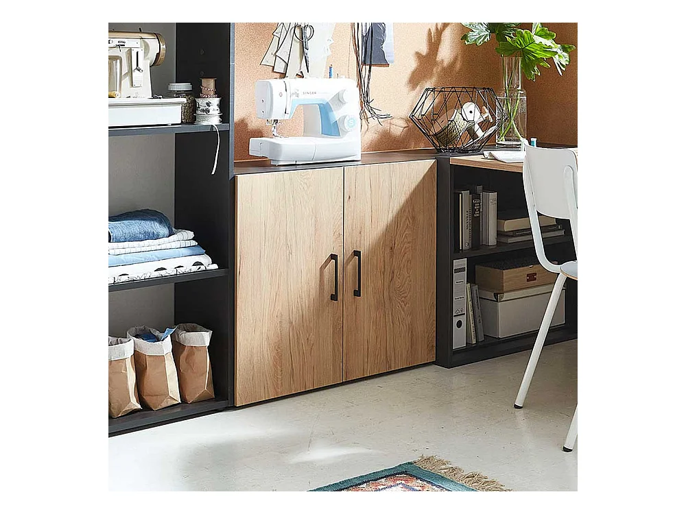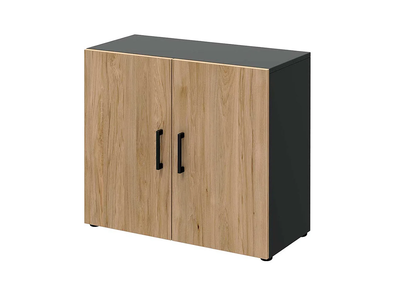 Kleiner Aktenordnerschrank 2 t�rig Hickory Holzoptik & Anthrazit
