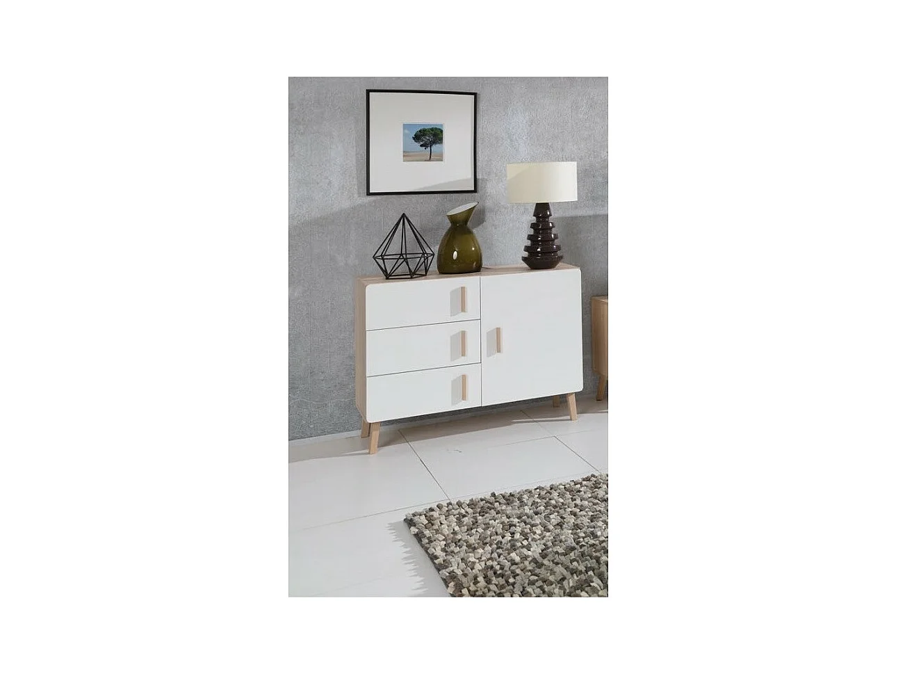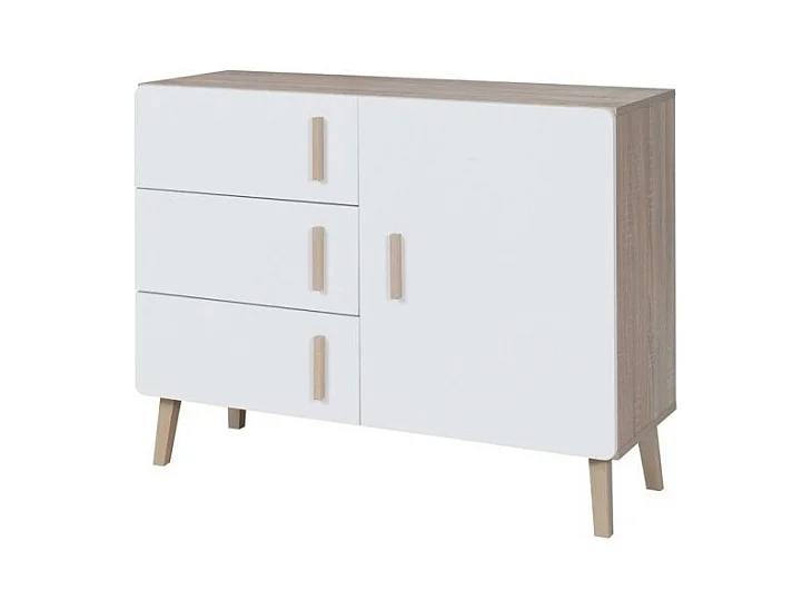 Kleines Sideboard OSLO - Skandinavischer Stil - Farbe Eiche und Weiß - 100 x 78 x 40 cm