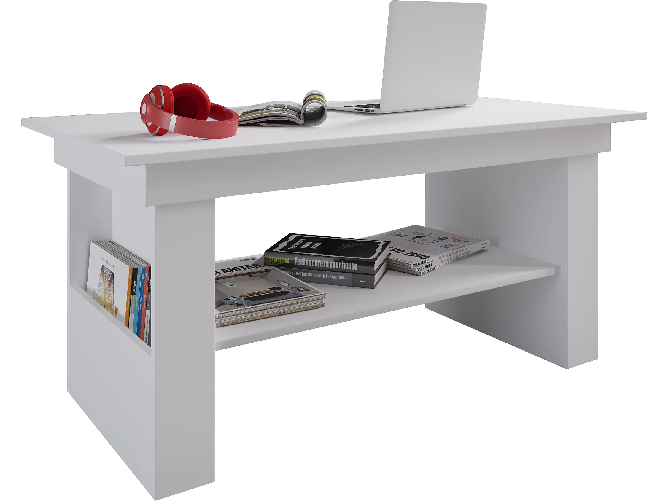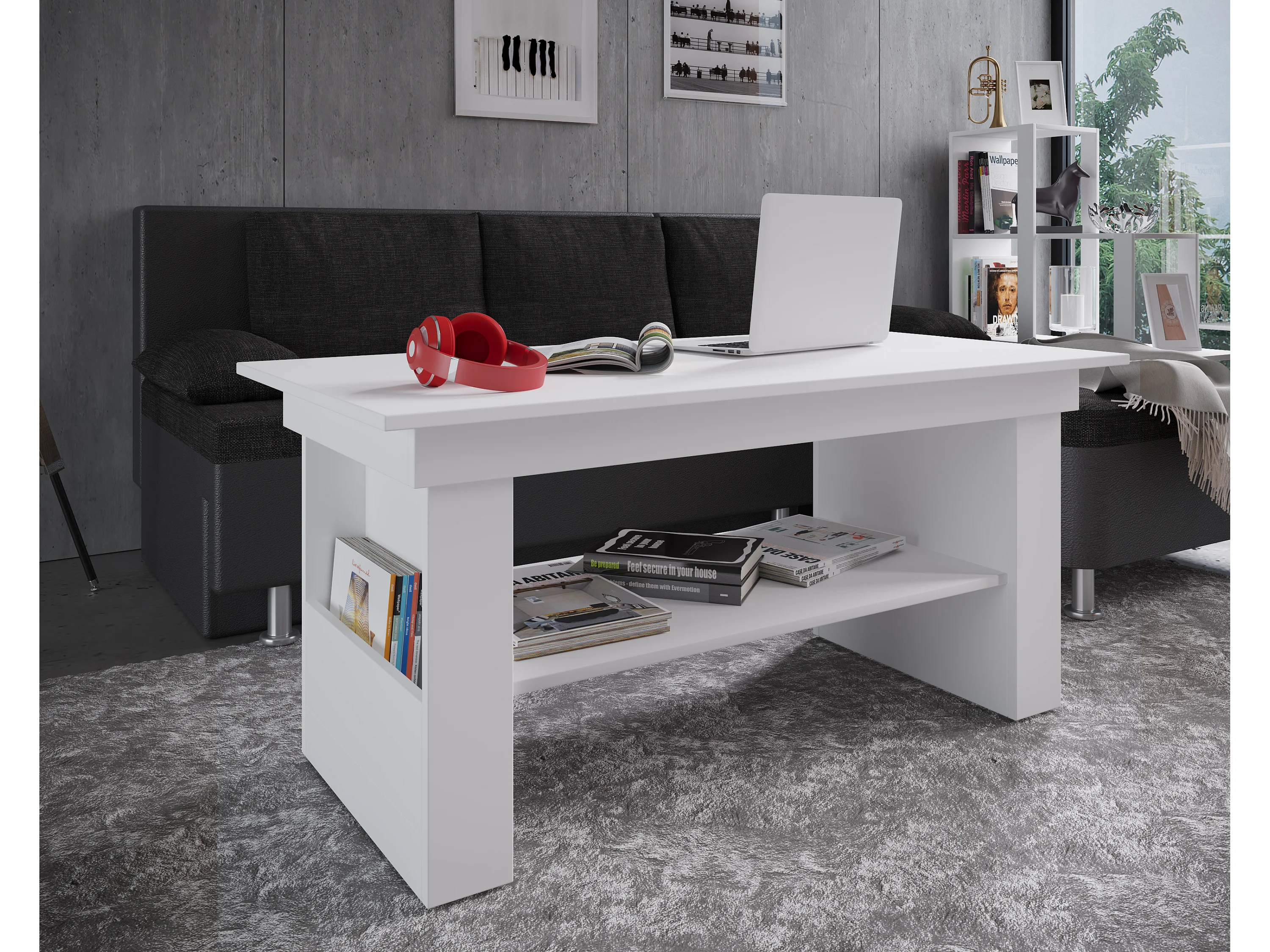 Kobila Couchtisch mit 1 Regal und 2 Fächern weiß.